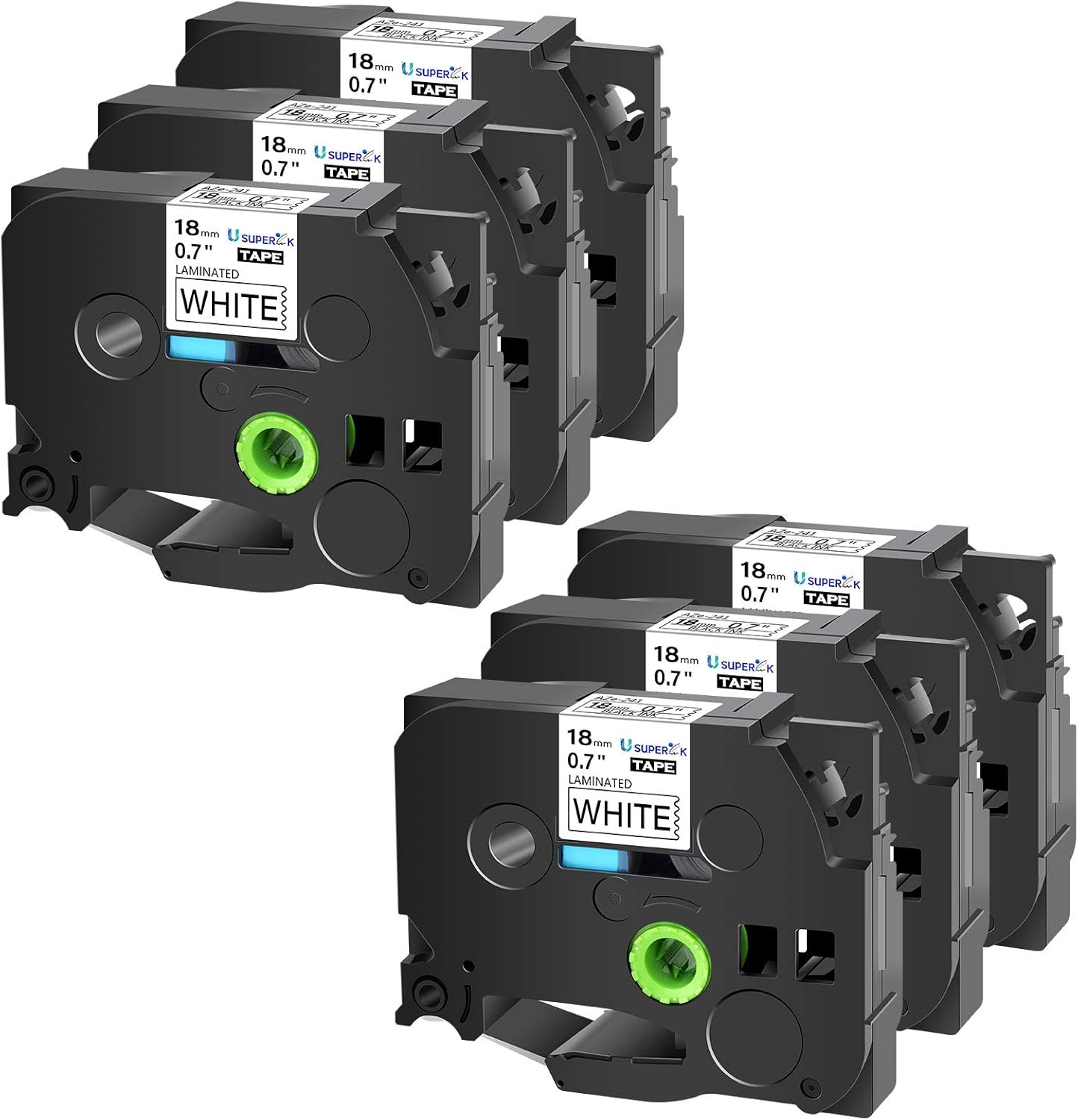 6PK 18mm 0.7'' Laminated White Tape Compatible for Brother P-Touch Label Maker Tape TZe-241 TZe TZ Label Tape TZ-241 TZe241 TZ241 Black on White for PT-D400 D410 D600 D610BT D460BT