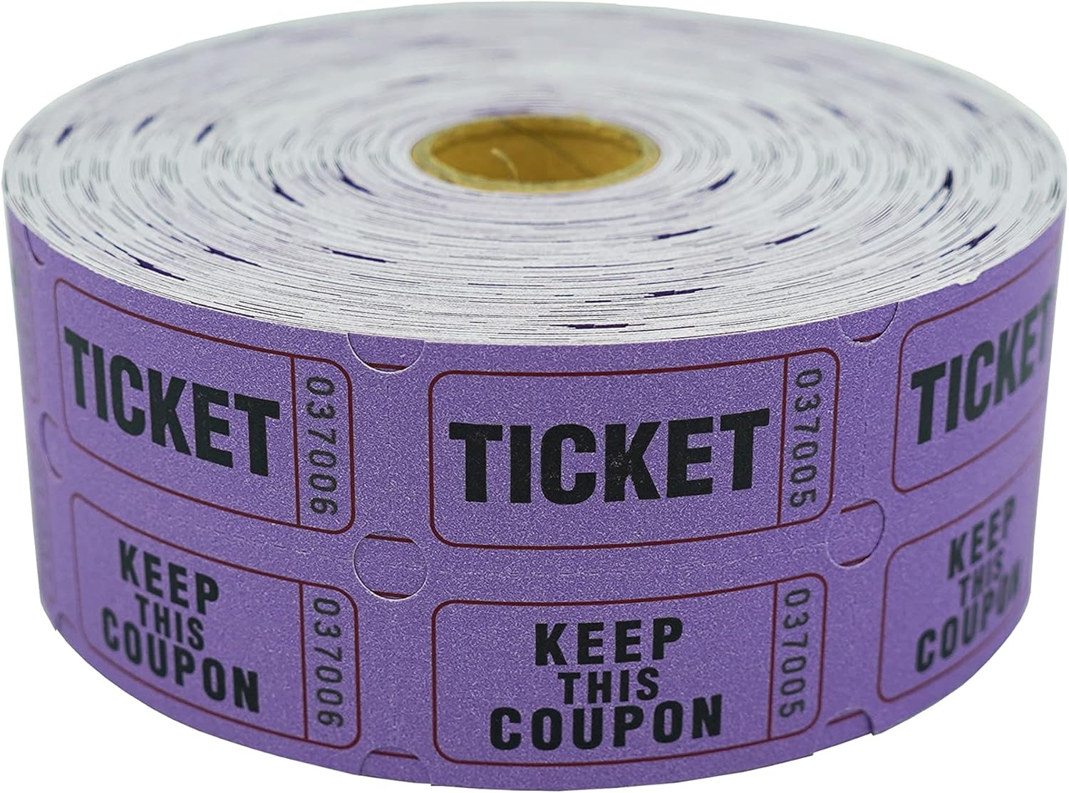 DNB 1000 Raffle Tickets - Double Roll 1000 Pairs per Roll 2 x 2 Inch 50/50 Consecutively Numbered Tickets for Entry/Events/Fundraiser/Prizes - Purple