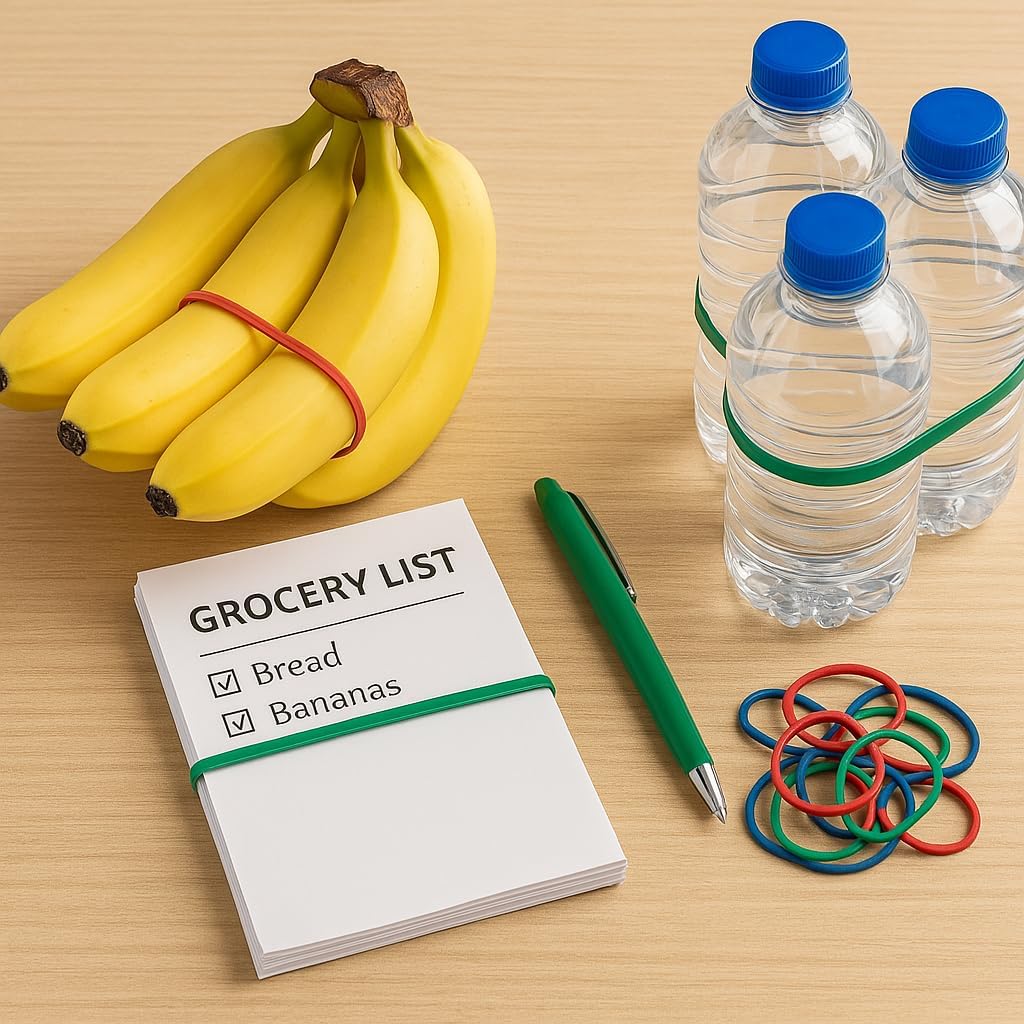 - Red, blue, and green rubber bands