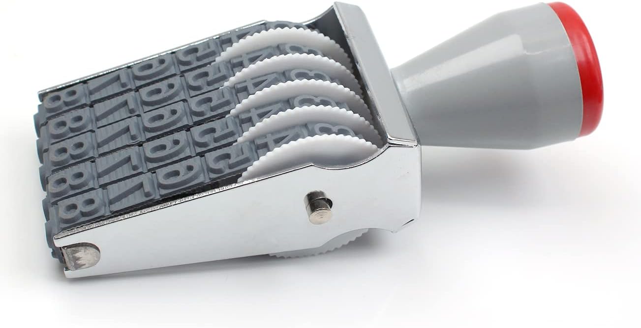 - 5 Digit Rubber Number Stamp, There are a total of 5 plastic wheel rotating belts. The rotating belt contains ten Arabic numerals from 0 to 9 and some symbols. Each rotating belt can be freely rotated, and you can manually arrange the numbers or symbols you want. Arabic numerals have 0-9 (10 digits) and symbols