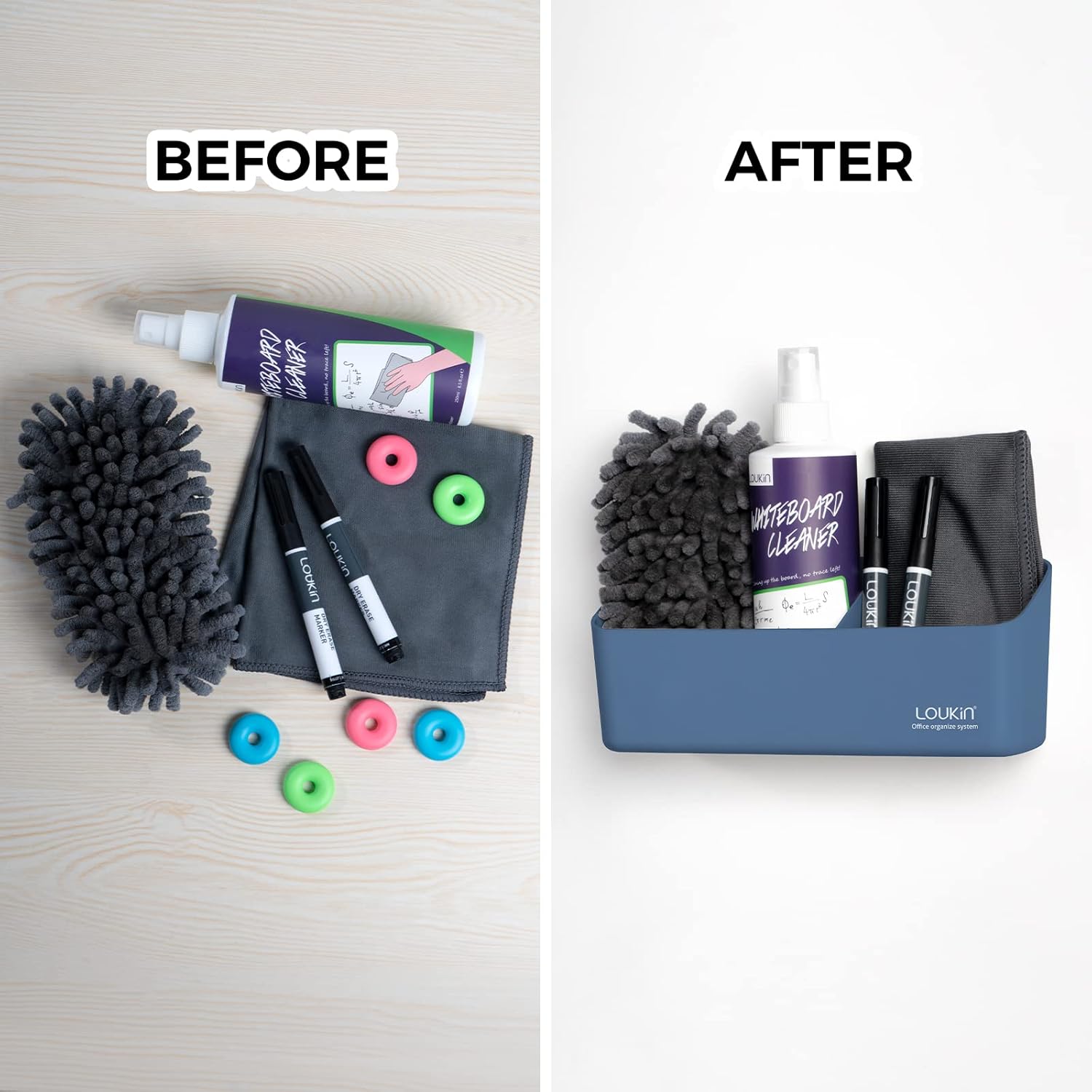 loukin Magnetic and Adhesive Marker Holder, Dry Erase Accessory Tray, Magnetic Storage Organizer for Whiteboard, Glass or Refrigerators (Blue)
