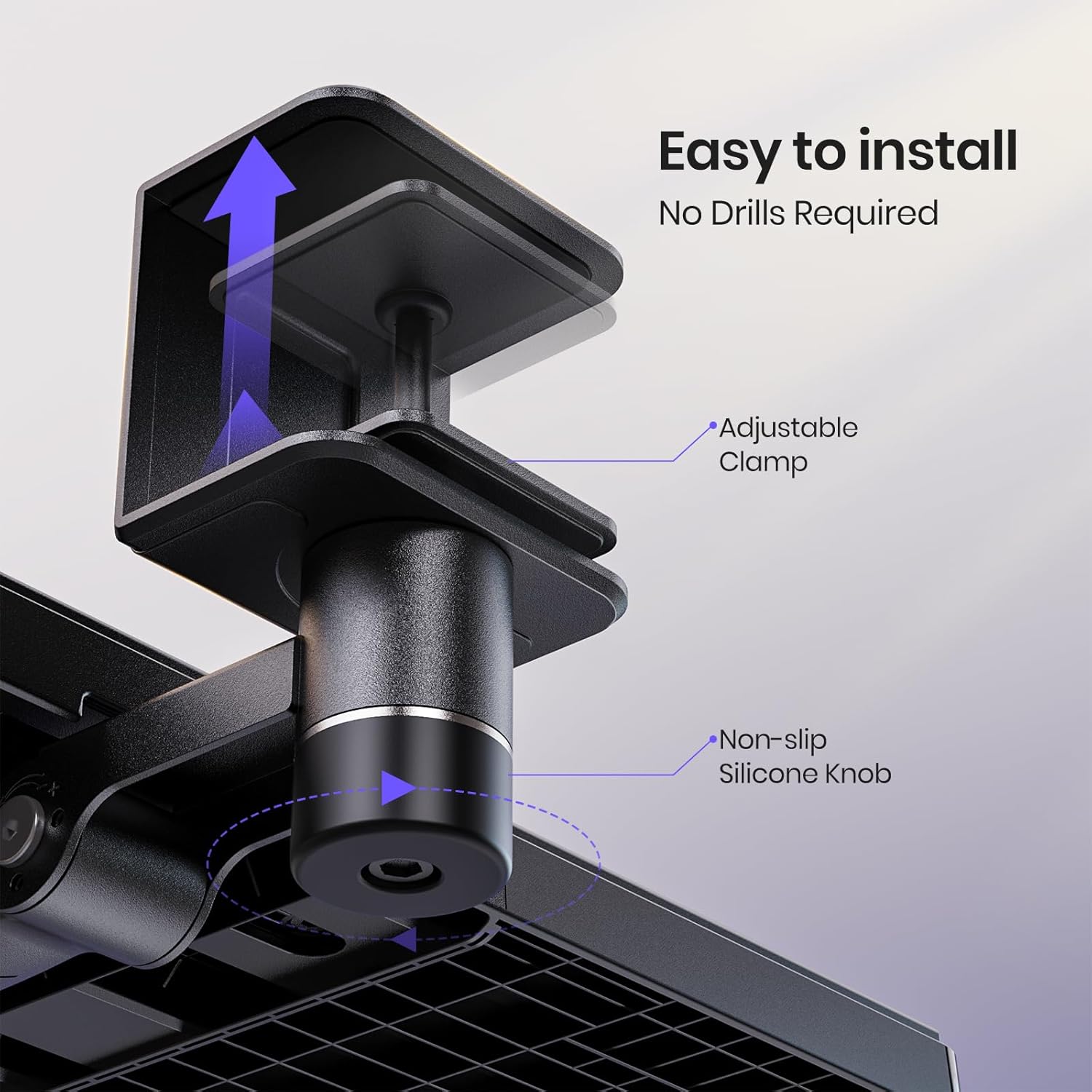 - Ergonomic Comfort: Featuring an Ergonomic Keyboard Riser with adjustable typing angles, this setup reduces neck strain and includes a wrist rest to alleviate pressure on the wrists. Offering 360° horizontal rotation and 237° vertical arm adjustment, along with 180° tilt capability, it caters to various typing positions for enhanced ergonomic comfort and support.