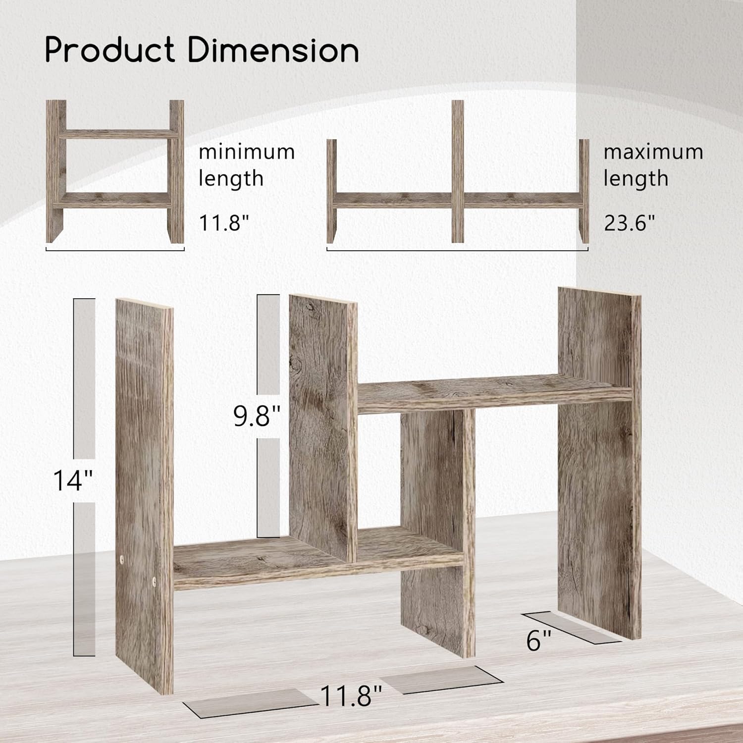 Jerry & Maggie Desktop Organizer Office Storage Rack Adjustable Wood Display Shelf Free Style Double H, Multi-Functional Mini Bookshelf for Desk Natural Stand (Gray Oak)