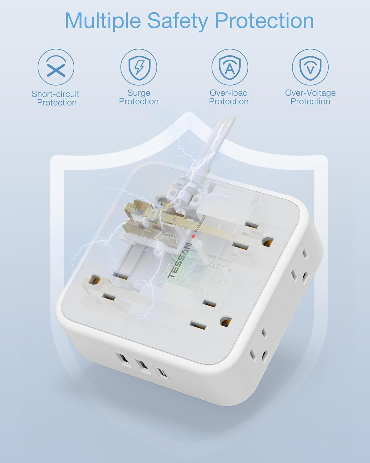 - Special Feature : On And Off Switch, Surge Protection, Usb Slot, Wide Spaced Outlet