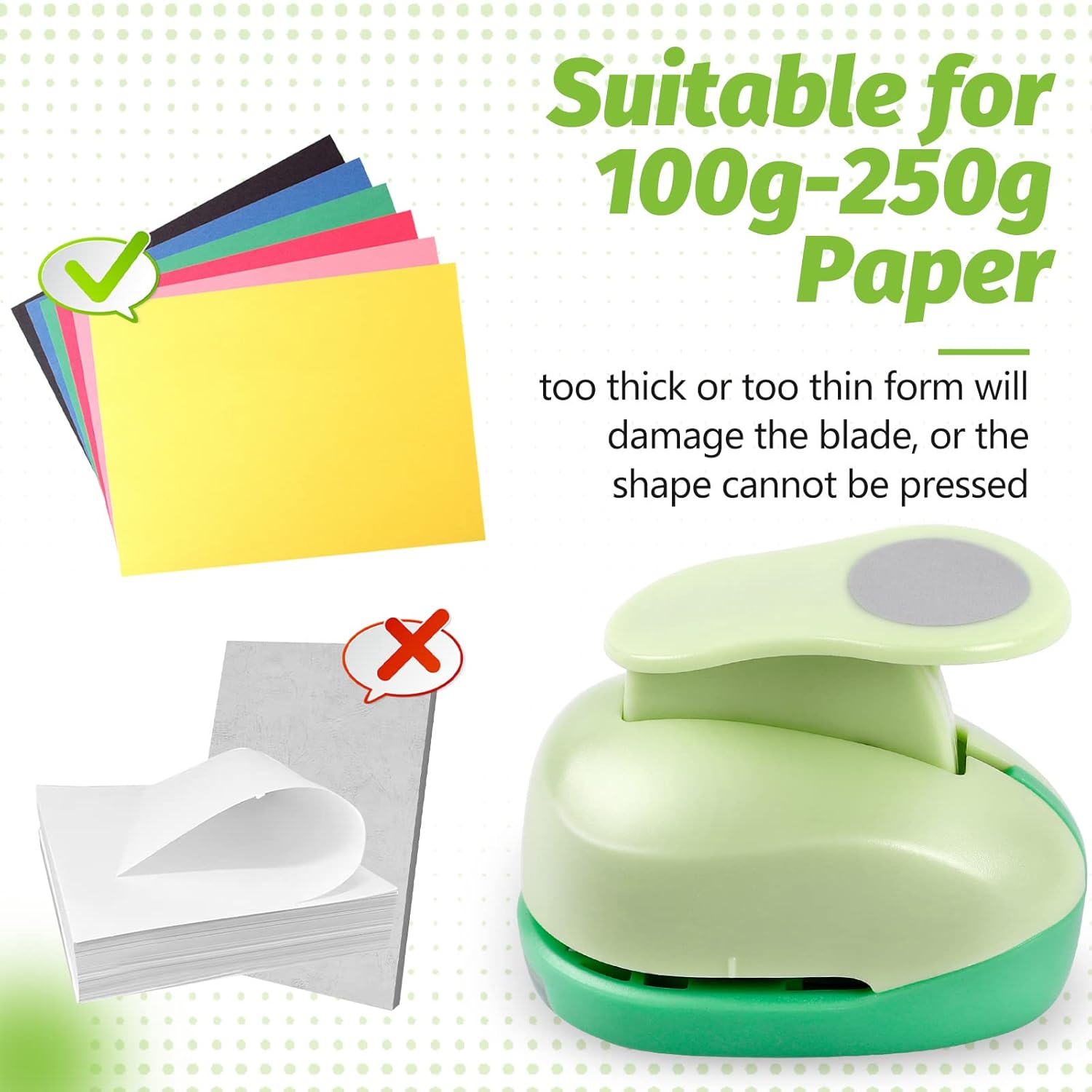 - NO-JAM PAPER GUIDE – PLEASE Use the paper punch with 120–250 g/m² card stock. Do NOT punch other sticker paper, adhesive vinyl, felt, foam, or tissue/soft/thin printer paper unless you stack 2–3 layers, wrong paper can jam the puncher and make the puncher don't work
