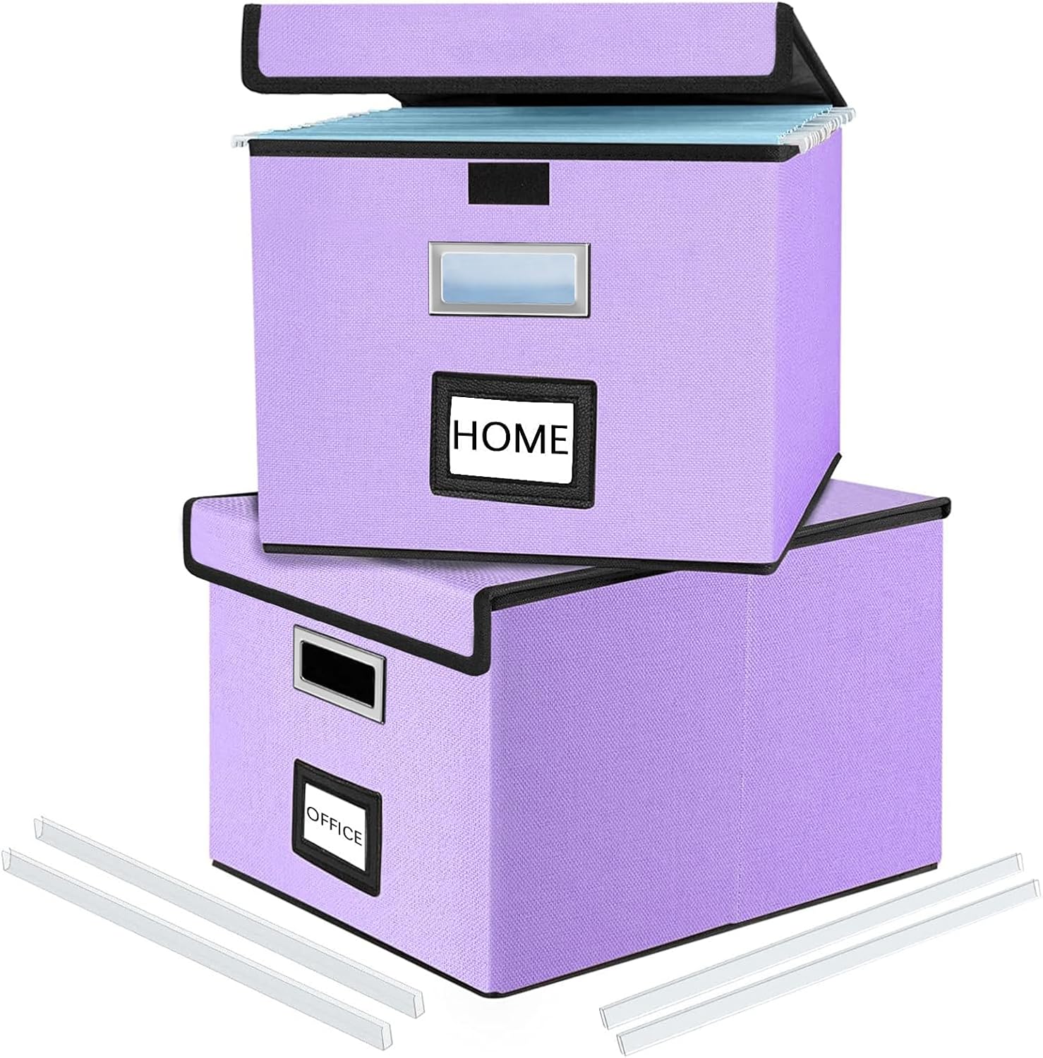 - Unique Functional Design - This file boxes both sides are equipped with practical PVP slide rails, which can not only prevent the two sides of the file storage box from loosening, but also facilitate the sliding of the file folder, which is very suitable for hanging file folders. The metal handles on both sides allow us to easily move the storage box, and the label slot on one side facilitates classification. Functional features and a beautiful design create the best filing organizer.