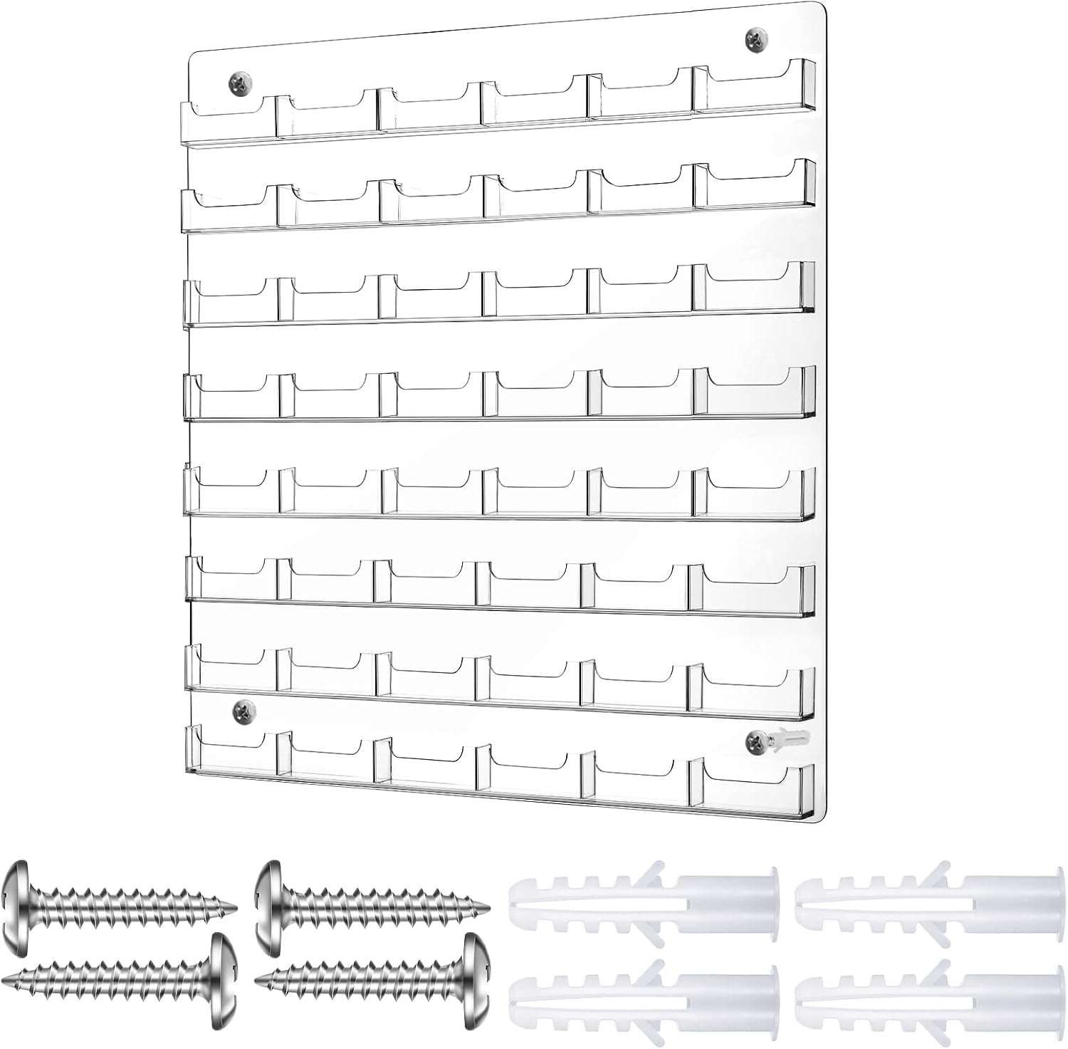 Hillban Acrylic Business Card Holder Wall Mount Clear Sticker Display Rack Multiple Card Holders Clear Acrylic Organizing Sticker Display Stand Pre Drilled(48 Pockets)