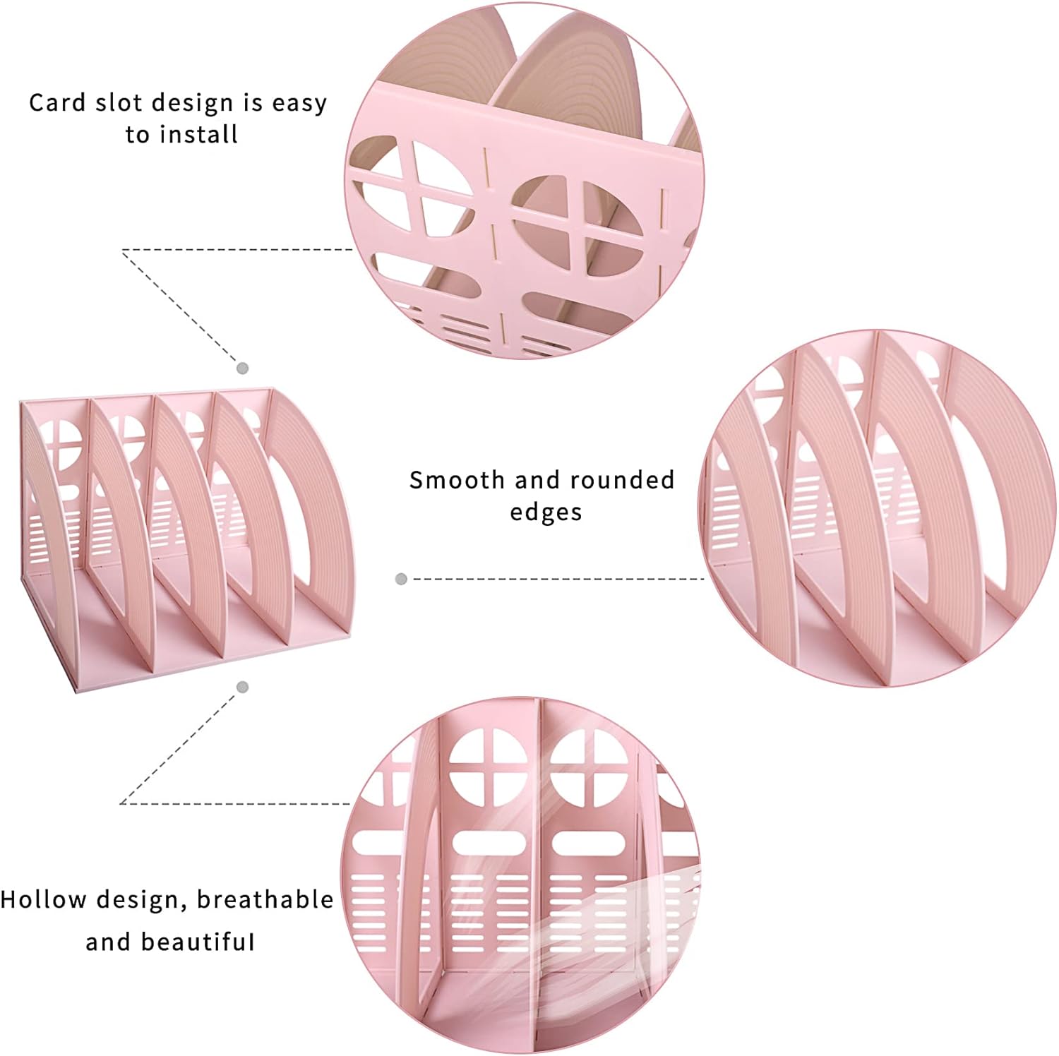 SAYEEC Magazine File Holder Folder Storage Desktop 4 Compartment Standing Hollow Pink Files Bookshelf Organizer Office Racks Displays Holds Notebooks Documents for School Working Students