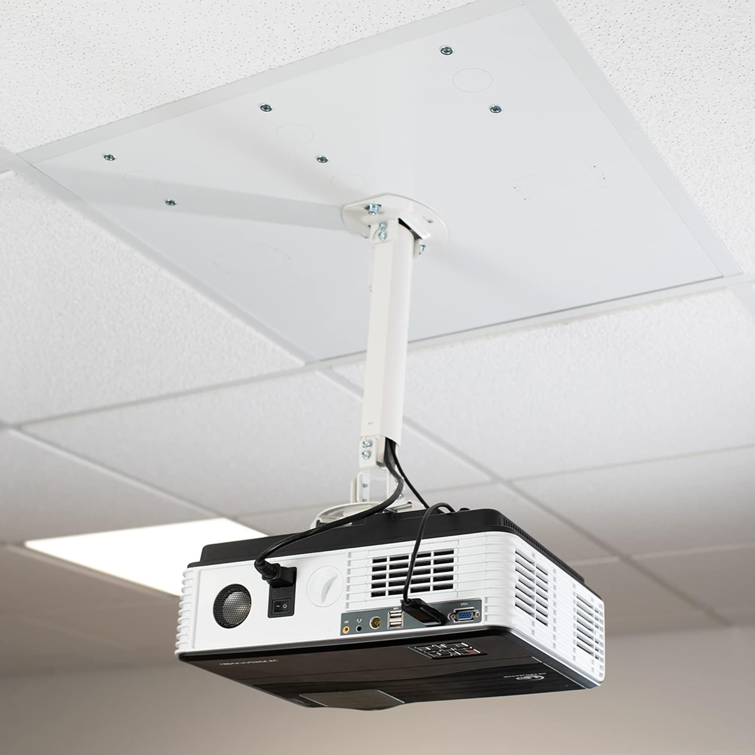 VIVO Universal Adjustable 2 x 2 feet Drop Ceiling Extending Projector Mount, Suspended Drop-in Ceiling Tile Projection Mounting Kit, for Office Home or School, White, MOUNT-VP08DP