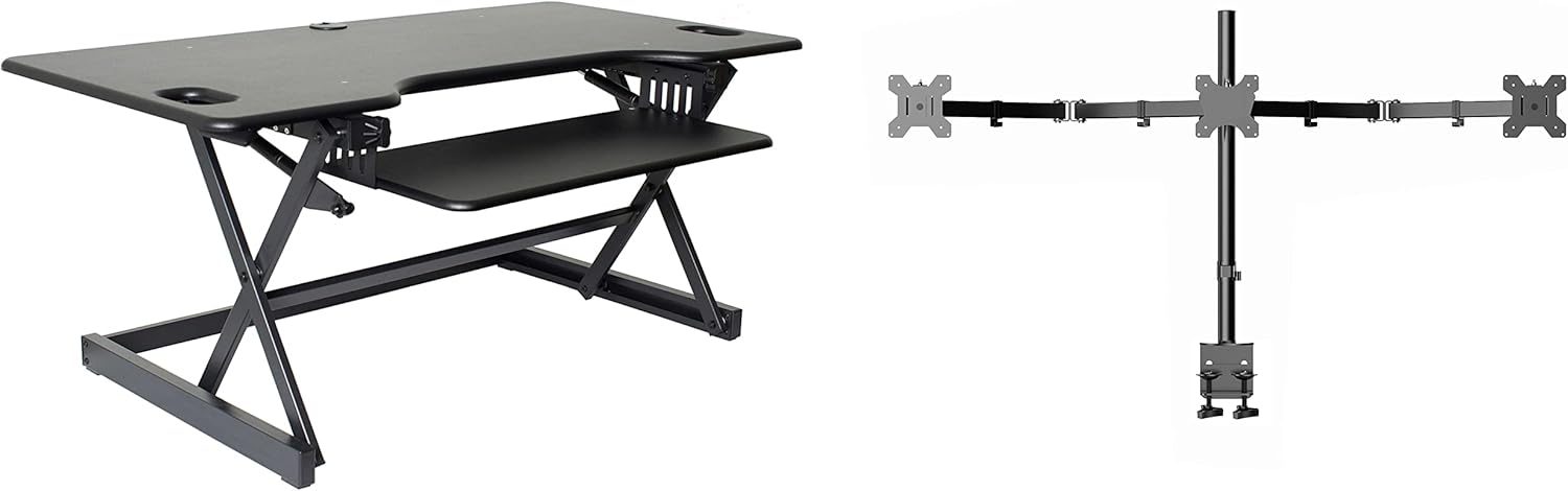 - STANDING DESK BUNDLE: Includes a 46" standing desk converter (R DADRB-46) and a Triple Monitor Arm (R DM3).