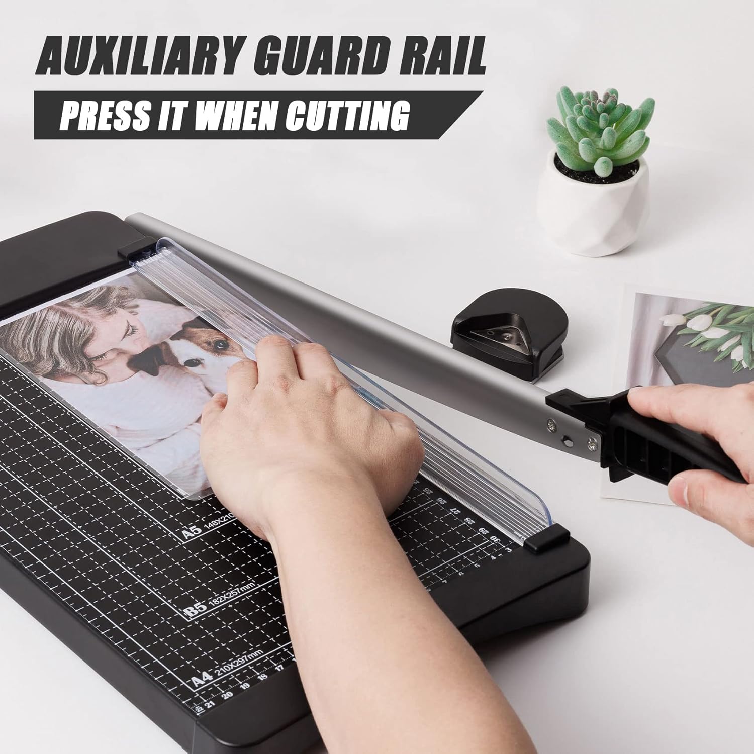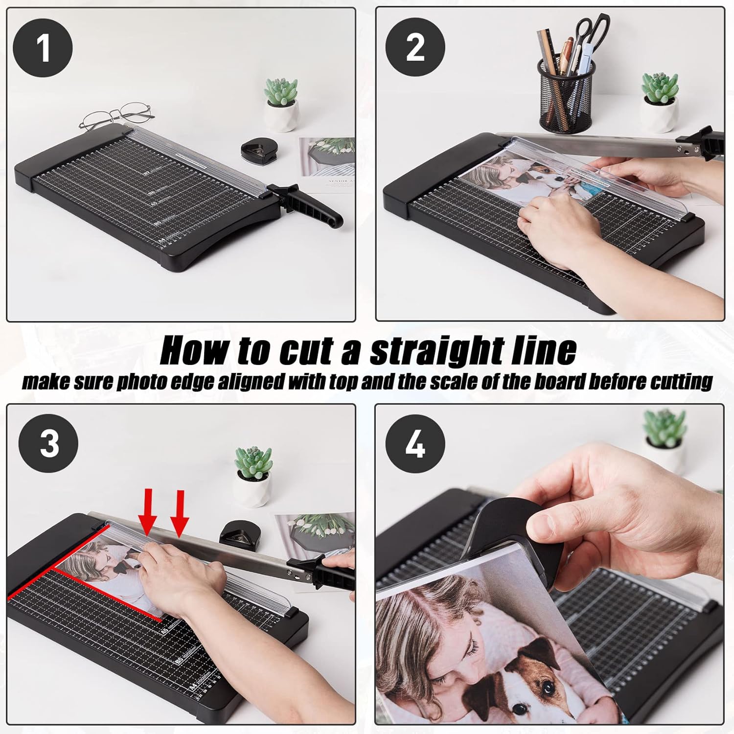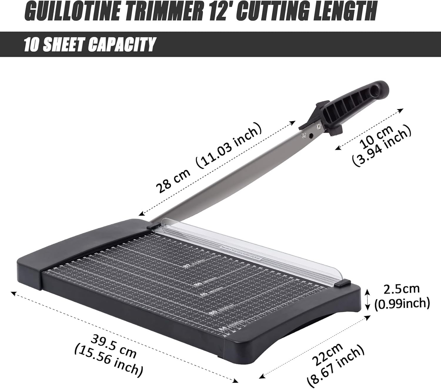 - High-Performance Guillotine Trimmer : Thick and sharp stainless steel blades will stay sharper longer; Accurate measuring scale make cutting work more quick and precise; The paper cutter is suitable for cutting photo cardstock documents