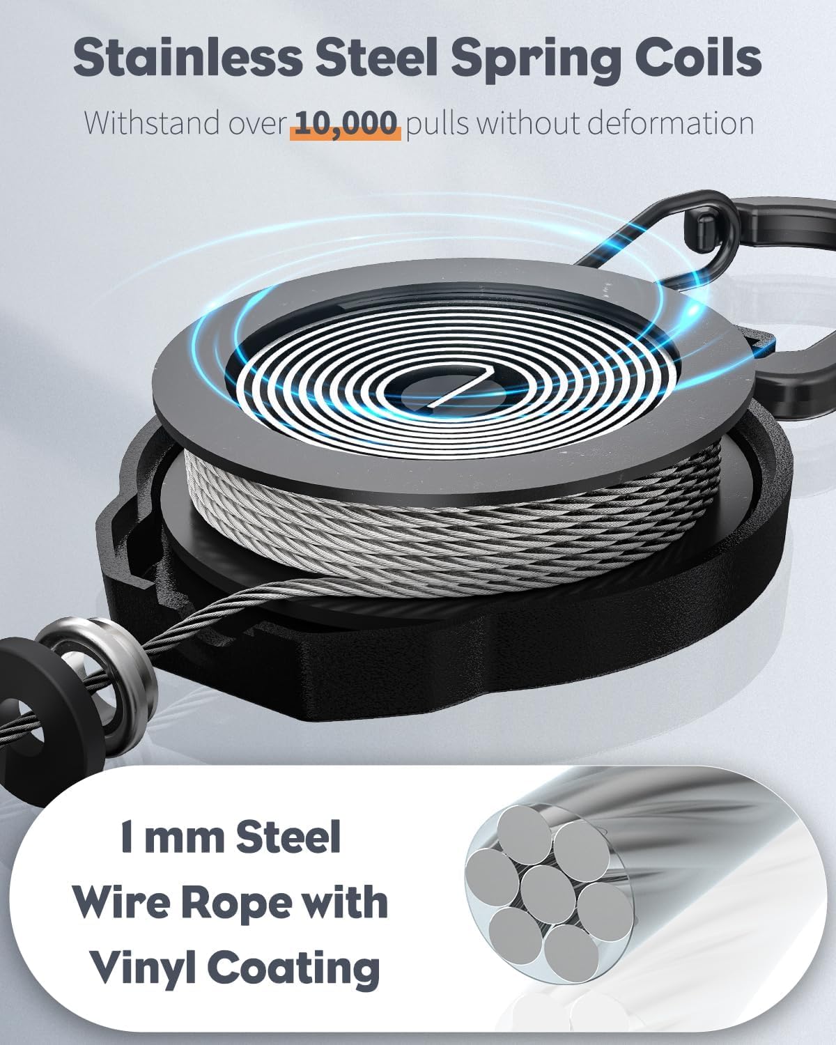 - Strong 1 mm Wire Rope: Braided with 7 steel strands, it is able to stretch up to 31.5 inches, making it easy to open the door without removing the badge or key. Its vinyl coating greatly reduces friction, ensuring it glides in/out more smoothly.