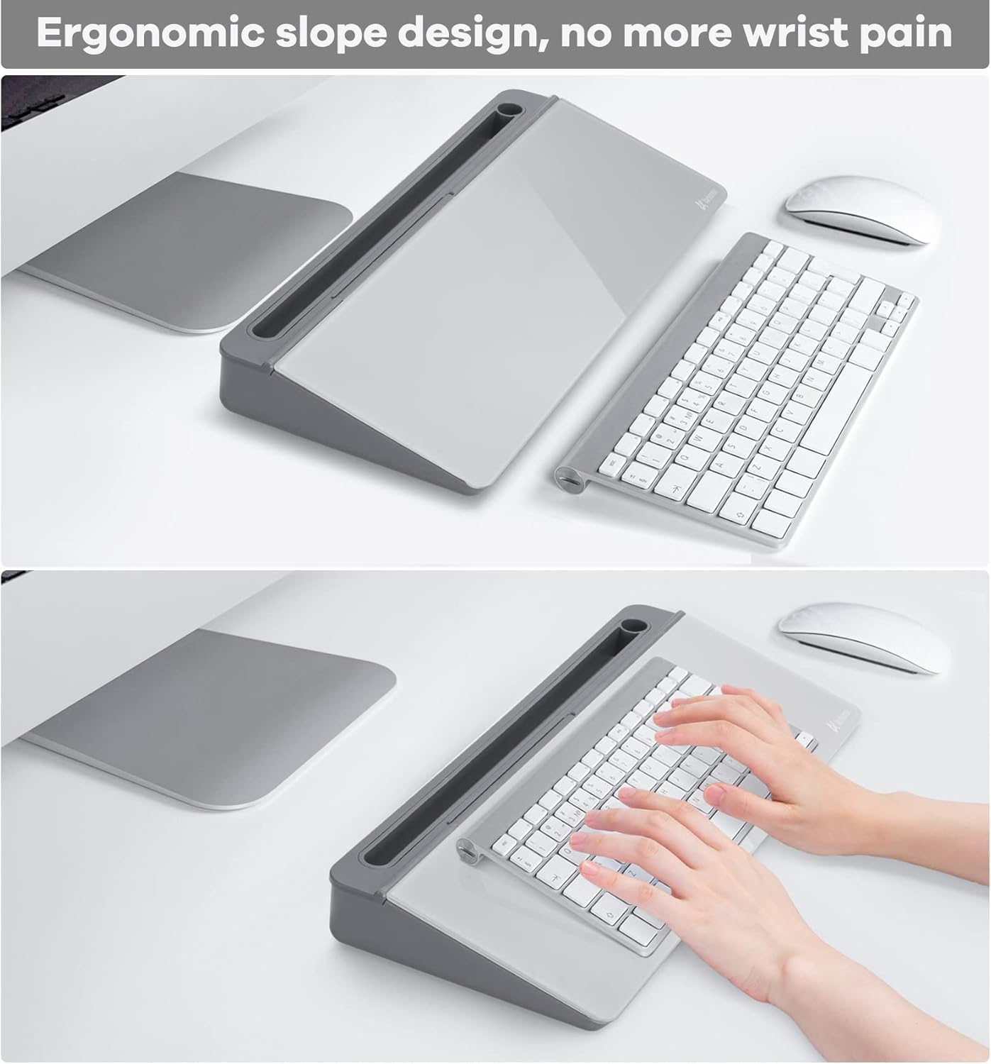 - Multi-function: Other than the glass board and built-in storage box, this product also has a slot on the top which can hold a phone or a tablet.