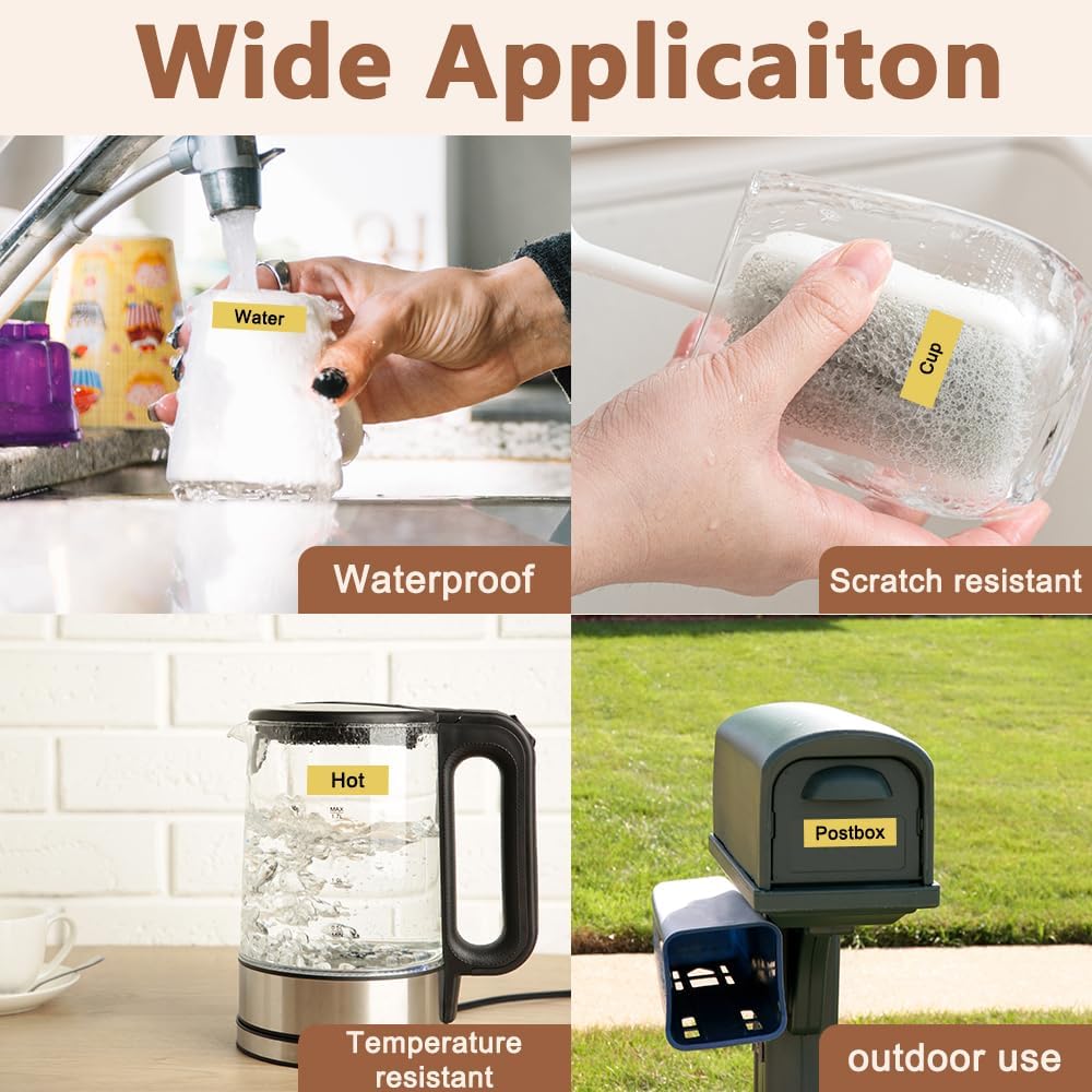 - Size - 1" ( 24mm ) x 26.2' ( 8m ) each 24mm label tape. Color - Black letter on gold tape