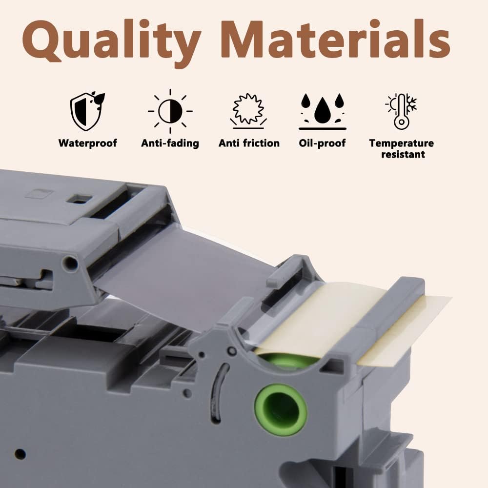 - Wide application: Compatible for Brother P-touch TZe 841 label tape is ideal to print clear, good-looking and durable labels. These labels are great for shelving, kitchen use, cabinets, file folders, USB sticks, food containers, storage boxes, personal possessions, children's school equipment with it's superior adhesive