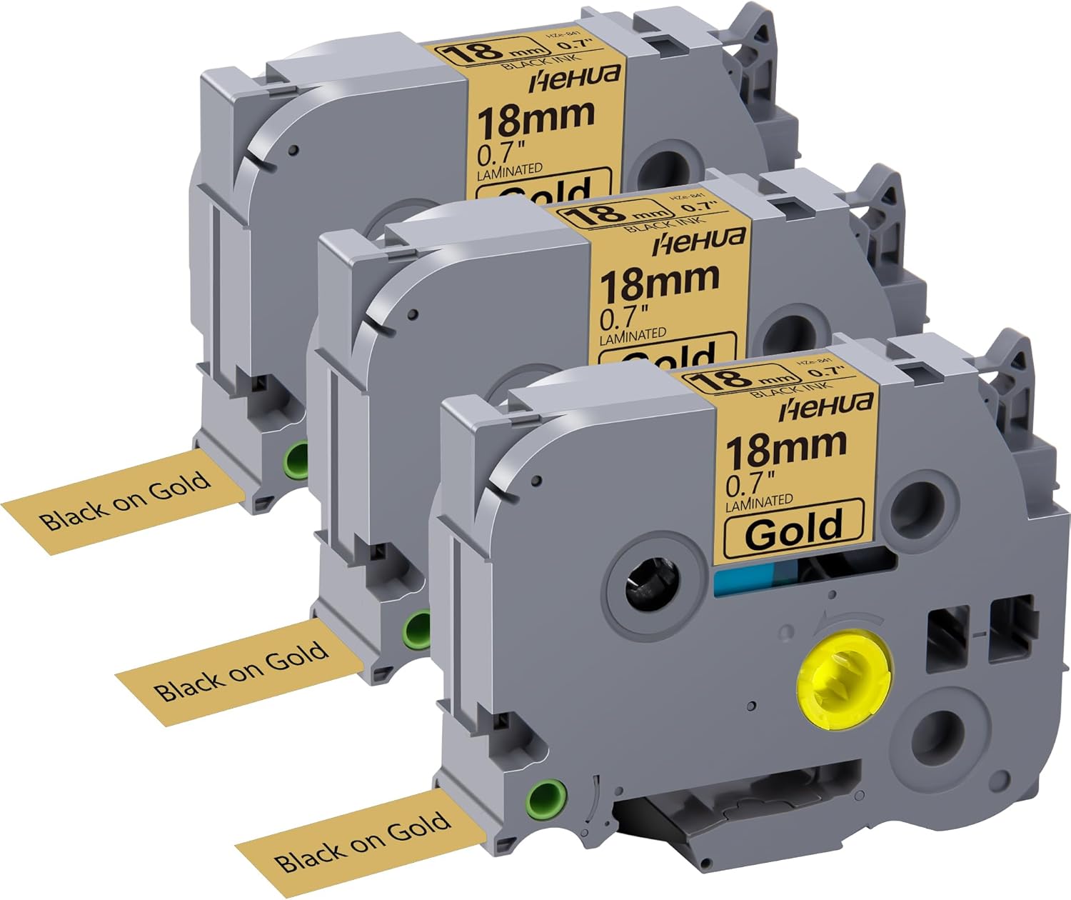 Hehua 18mm 0.7 Black on Gold Laminated Tape Compatible for Brother Label Maker Tape TZe-841 TZe841 TZ-841 TZ841 for P Touch PT D400 D450 D600 D610 P710BT, 3/4'' x 26.2ft, 3 Pack