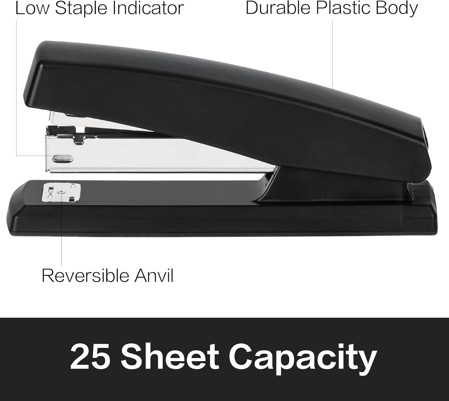 Deli Stapler, Desktop Stapler, 2 Pack, Office Stapler, 25 Sheet Capacity, Includes 2000 Staples and 2 Staple Removers, 2 Pack,Black