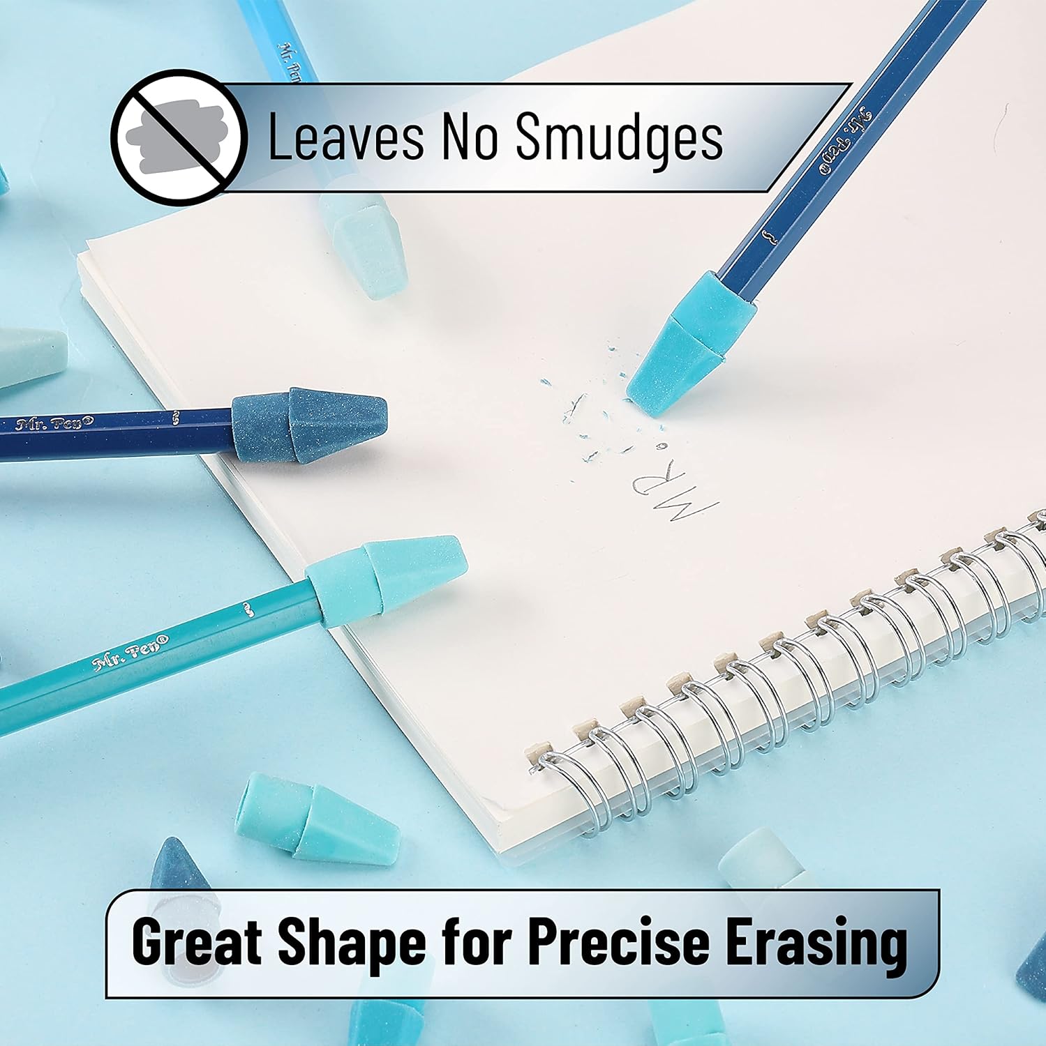 - Mr. Pen pencil top easers are made of premium latex-free rubber to deliver precise, smudge-free corrections and fit over the end of most standard pencils.