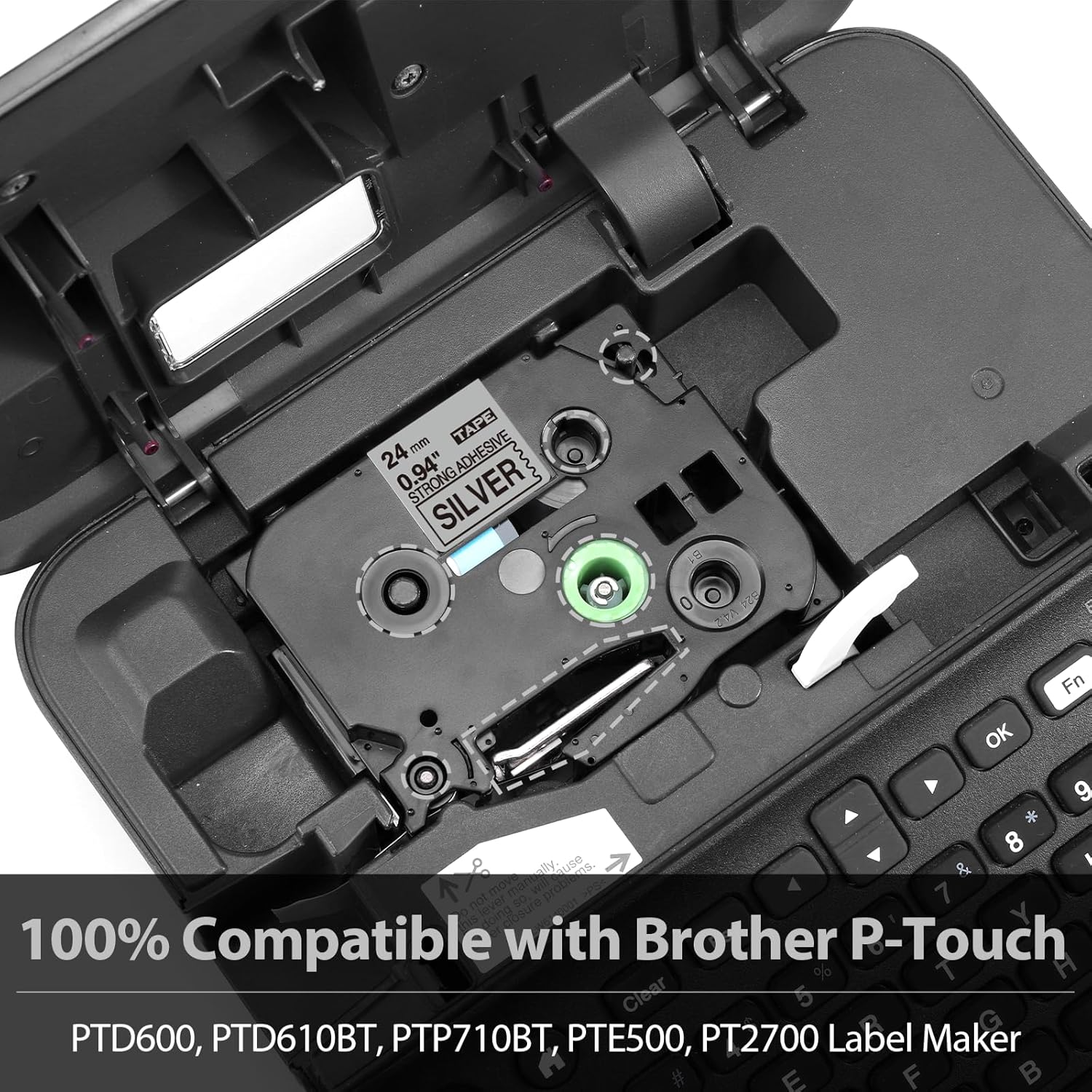 - Compatible with brother ptouch label maker that using 24mm 1" black print on silver tze tape: PTD600 PTD610BT PTP750W PTE500 PTE550W PTE800W PTH500LI PTP700 PTP900W PTP950W PT330 PT350 PT520 PT530 PT540 PT550 PT580C PT1400 PT1500PC PT1600 PT1650 PT2200 PT2210 PT2300 PT2310 PT2400 PT2410 PT2430PC PT2500PC PT2600 PT2610 PT2700 PT2710 PT2730 PT2730VP PT3600 PT7500 PT7600 PT9200DX PT9200PC PT9400 PT9500PC PT9600 PT9700PC PT9800PCN,etc.
