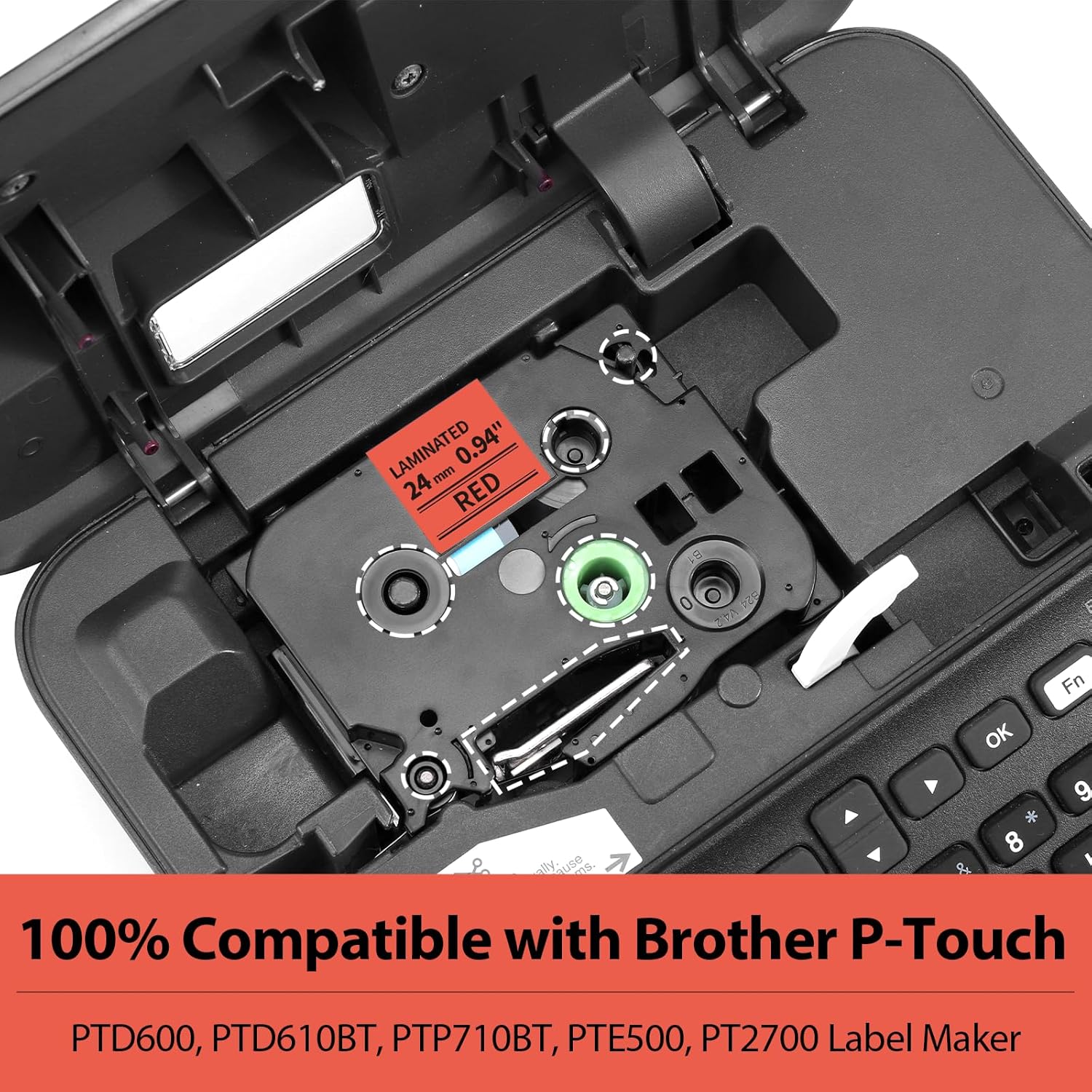 - Compatible with brother ptouch label maker that using 24mm 1" red tze tape: PTD600 PTD610BT PTP750W PTE500 PTE550W PTE800W PTH500LI PTP700 PTP900W PTP950W PT330 PT350 PT520 PT530 PT540 PT550 PT580C PT1400 PT1500PC PT1600 PT1650 PT2200 PT2210 PT2300 PT2310 PT2400 PT2410 PT2430PC PT2500PC PT2600 PT2610 PT2700 PT2710 PT2730 PT2730VP PT3600 PT7500 PT7600 PT9200DX PT9200PC PT9400 PT9500PC PT9600 PT9700PC PT9800PCN,etc.