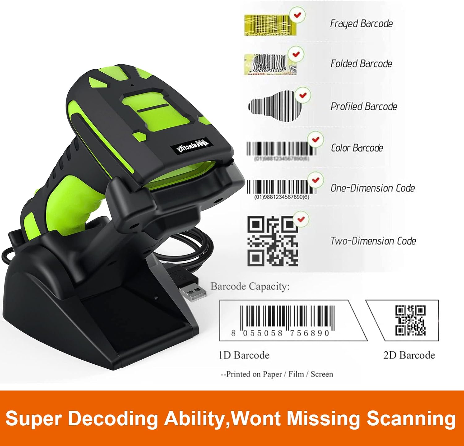 Alacrity 2D Industrial Wireless Barcode Scanner with Charging Stand, Bluetooth Drop Resistant, 1968 Feet Transmission Distance 433Mhz QR 1D Bar Code Reader
