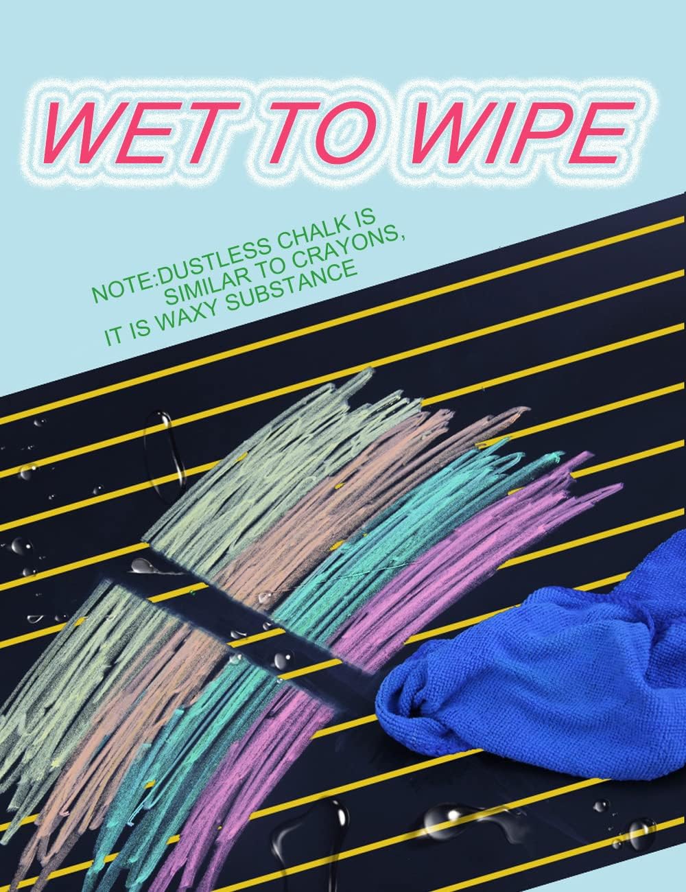 - Easy to Clean: Washable chalk can be wiped clean with a wet cloth or eraser.