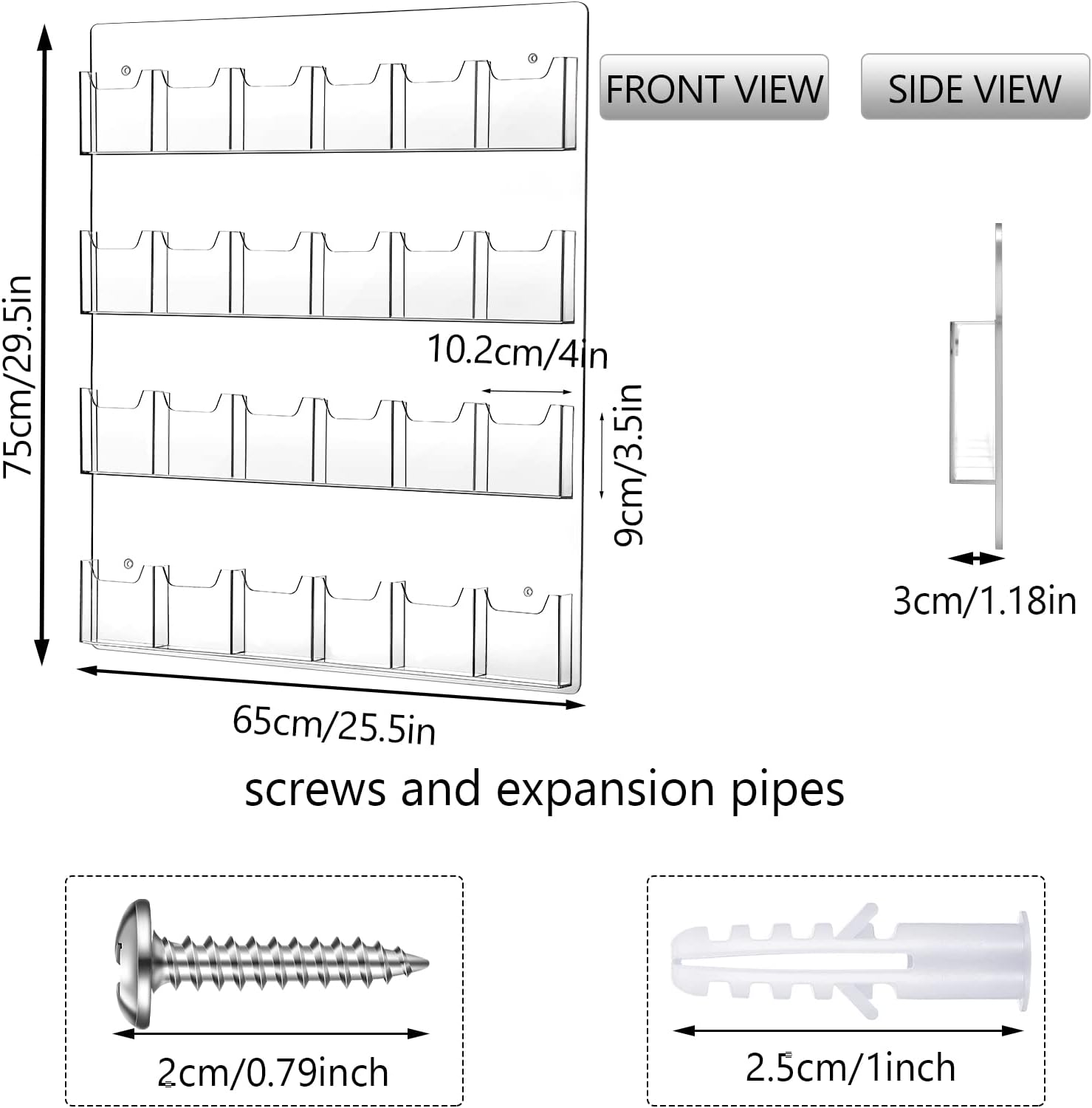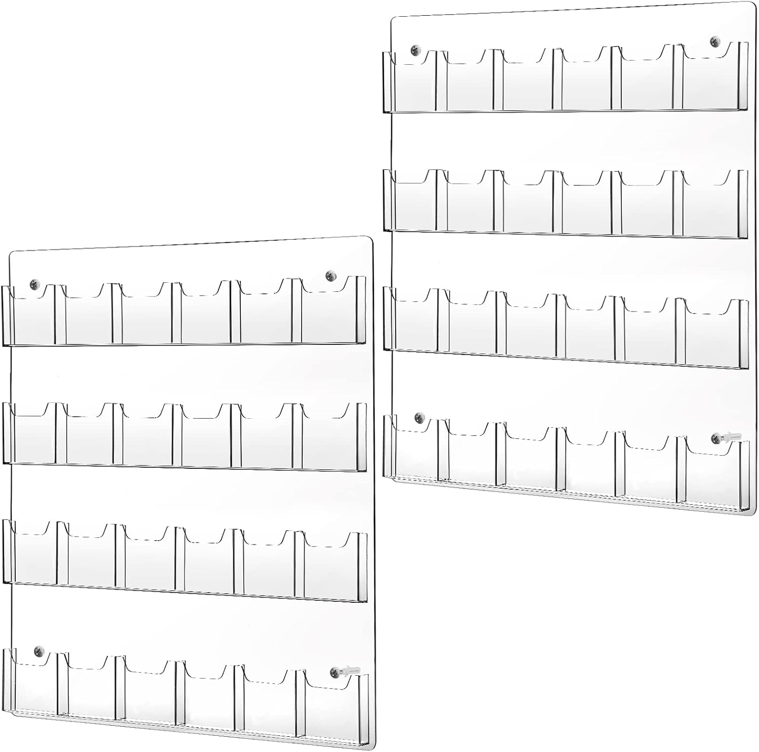 - Suitable Size: the overall dimension of our acrylic brochure wall mount holders is 29.5 x 25.5 inches, each pocket dimension is 4 x 1 inch, and each pocket capacity is approx. 50 postcards, this is a useful business card or gift card wall display solution