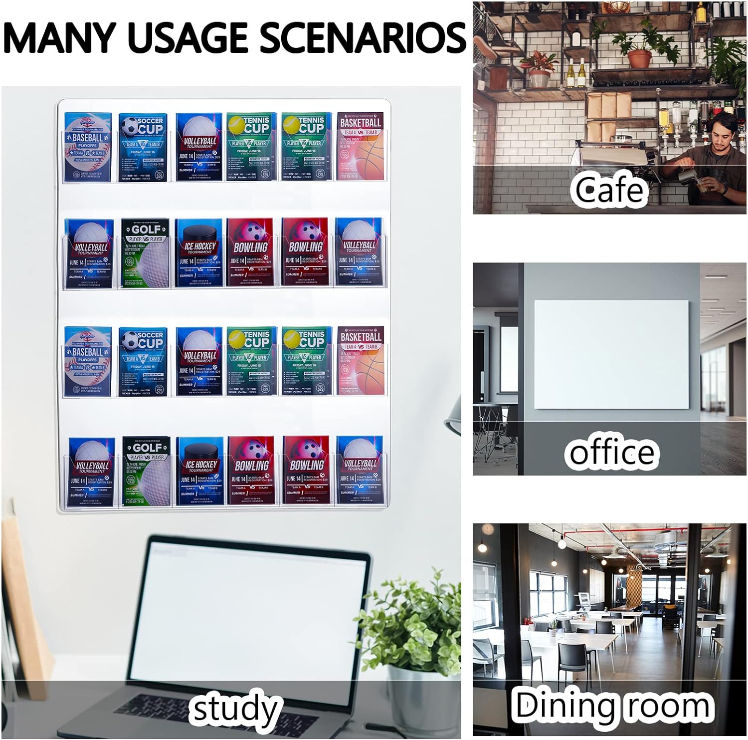 - Useful Design: these multi slot wall mount pamphlet holders feature accessories, like headers and signage areas for customization, our wall cases and dispensers are useful in commercial surroundings because they are capable of holding so much contact info, advertising like this is one of the most effective ways to increase brand awareness and also increase repeat purchases