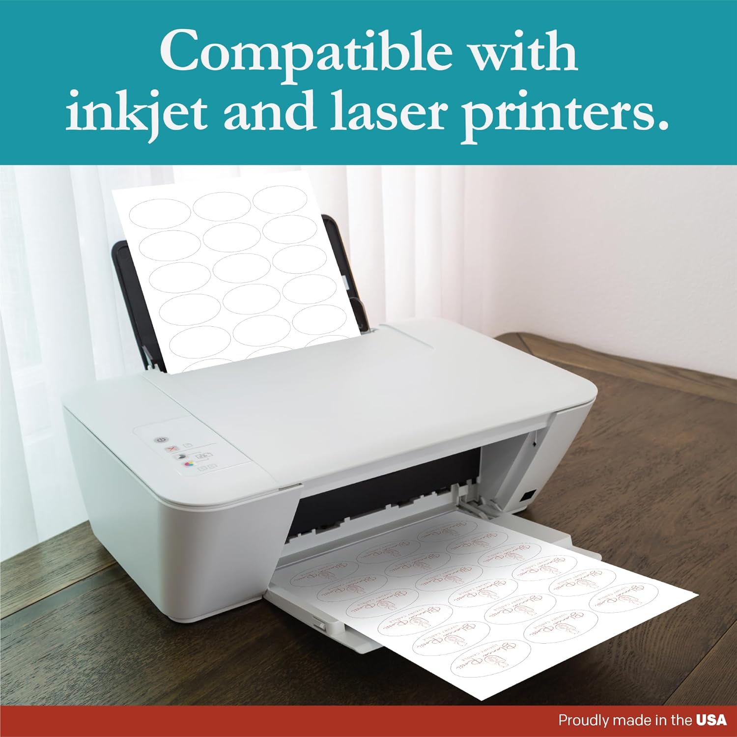 Premium Label Supply White Sticker Oval Labels – 2.5" x 1.5" Oval – Laser/Inkjet Compatible – (18 per Sheet), 1000 Sheets – 18,000 Total Adhesive Labels