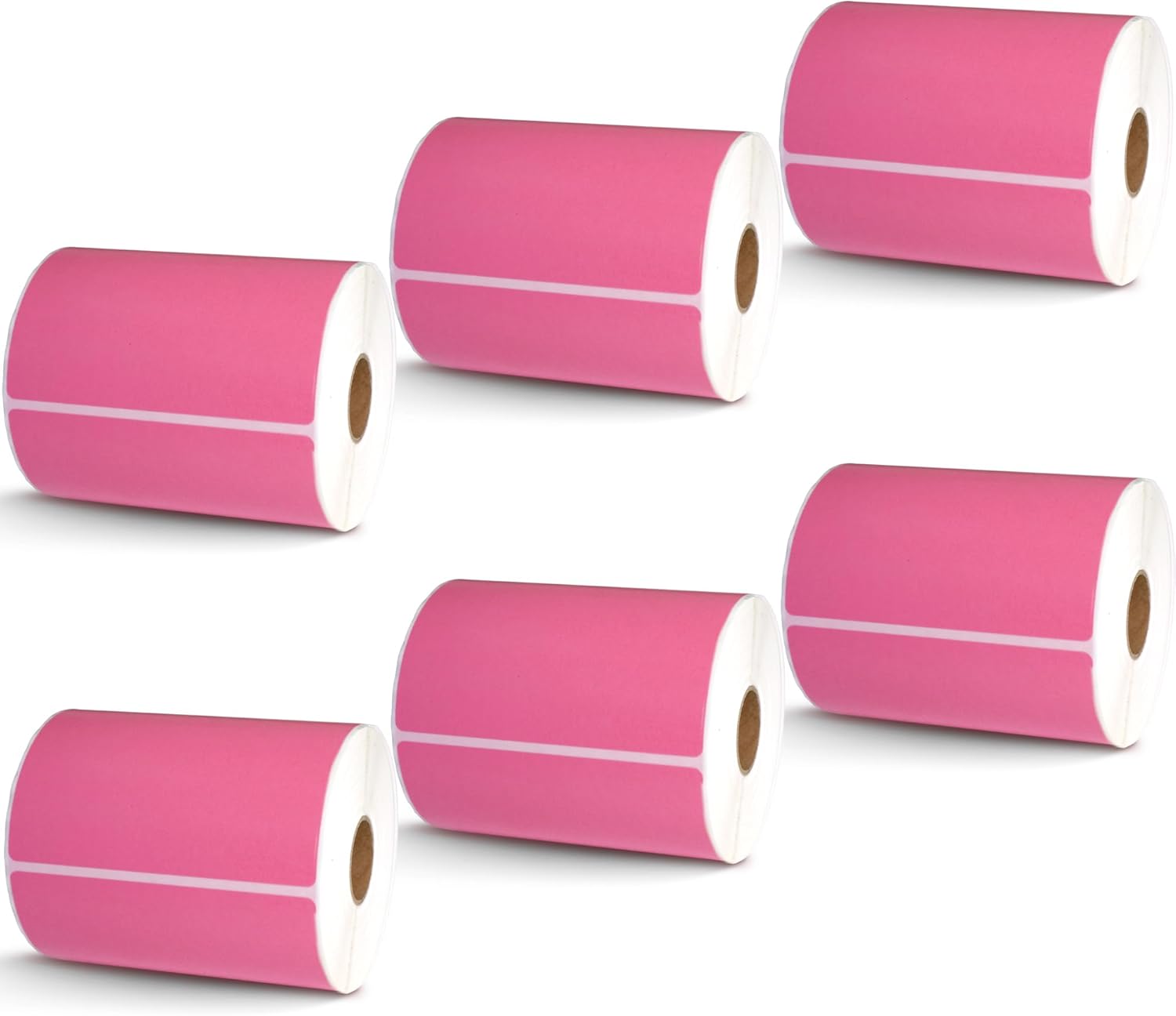 BETCKEY - 4" x 3" Shipping & Multipurpose Labels Compatible with Zebra & Rollo Label Printer,Premium Adhesive & Perforated[Pink, 6 Rolls, 3000 Labels]