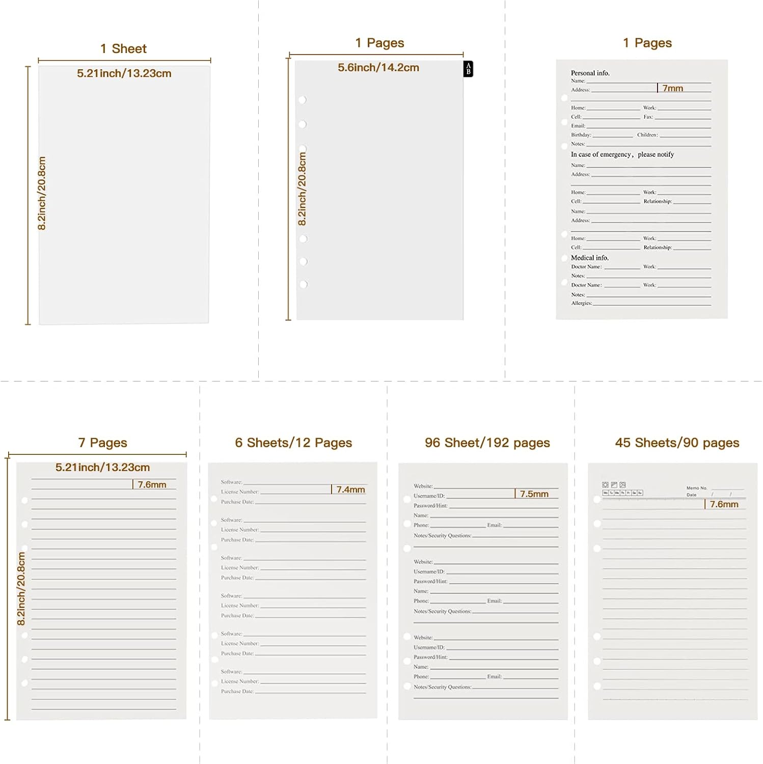 - Vintage Black PU Password Notebook: Sized at 6.7"x 9.25"x 1", our deluxe antique leatherette hardcover password book features 192 off-white pages, providing space for 576 entries including website, username/ID, password/hint, name, phone, email, and security questions/notes. Additional sections contain 12 pages for 72 software/license entries, 6 lined pages for key reminders, and an emergency information page. Effortlessly browse your records with 12 sturdy, laminated alphabetical dividers.
