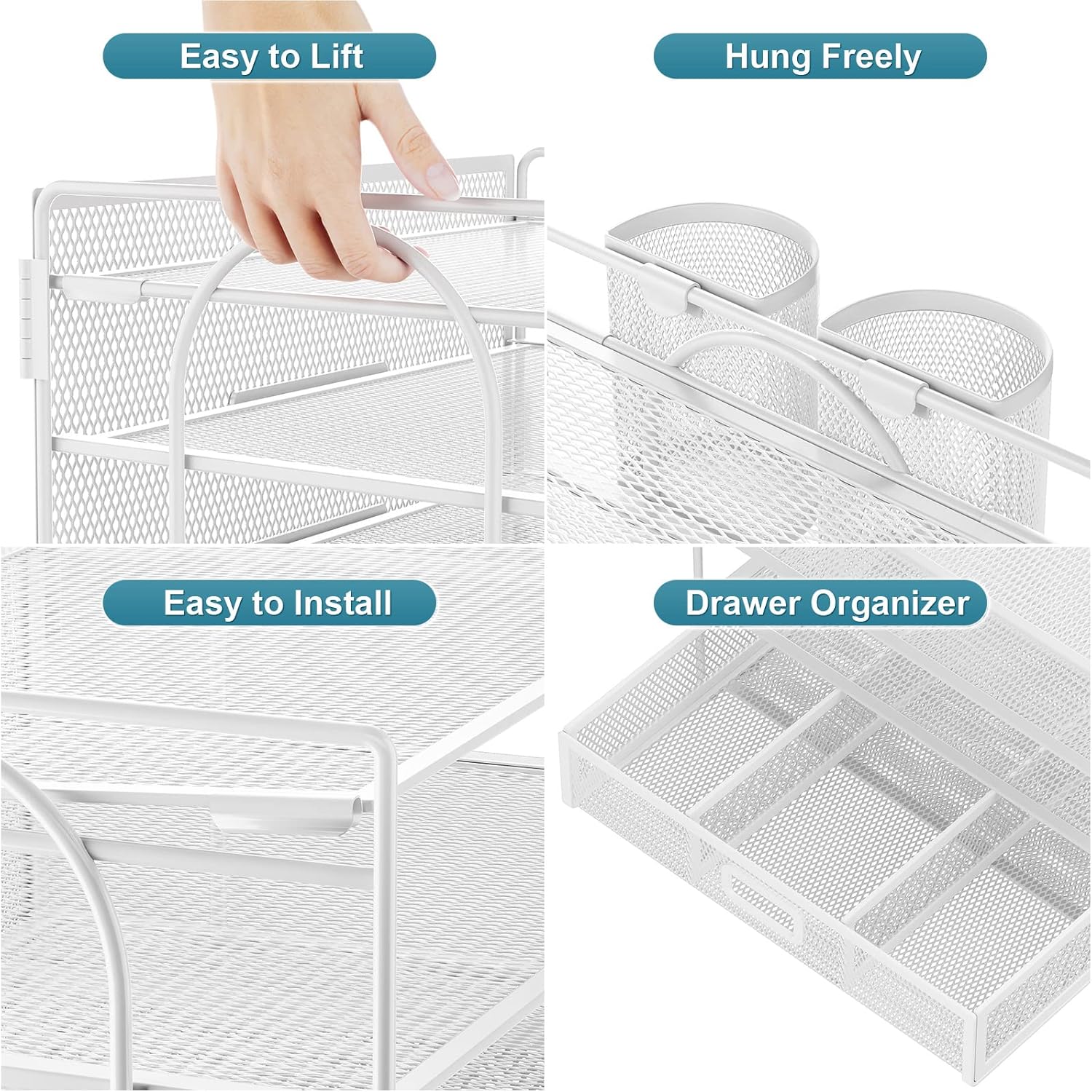 - 【Space Saving】 Outfit your space with the Hanging Pencil Holder (Built-in Hooks) and the top drawer organizer, which offers everything you need to keep your desk neat so you can stay on-task and do great work