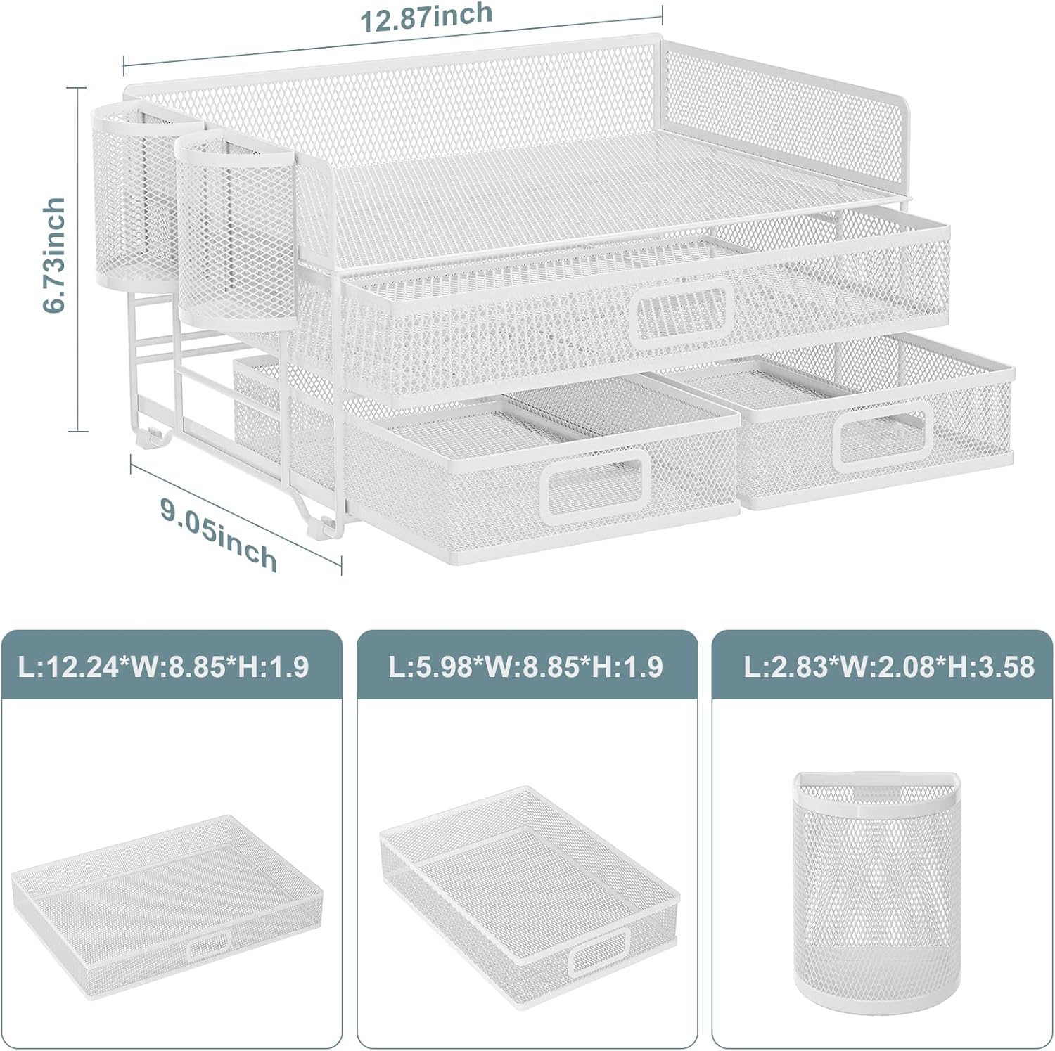 - 【Convenient Personal Storage】Compared with other mesh desktop organizer. The Multi-drawer design can help you store some important papers, whether it is personal letters or personal information can provide you with a certain privacy protection space.