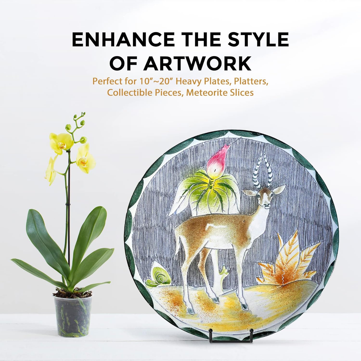 - CHOOSE YOUR LARGE STAND: - This 10 inch plate stand features a sturdy 2.5" deep lip, a 10° tilt angle, and a 4" widened design with a 5.3mm wire diameter, making it perfect for securely holding items ranging from 10" to 30" in size and up to 20 lbs in weight, such as heavy and thick plates, frames, and artwork.