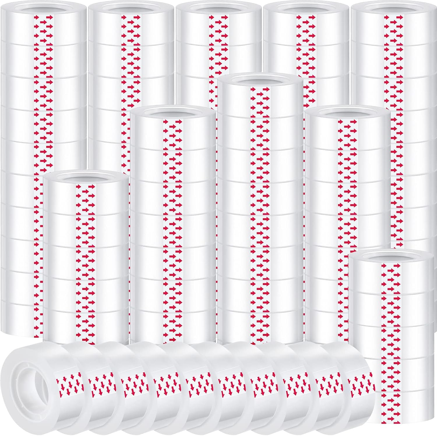 Pasimy 96 Rolls Clear Tape Bulk Strong Sticky Transparent Tape Refills for Dispenser, Office, Home, School, Wall, Carpet, 3/4 x 1000 Inches(Red)