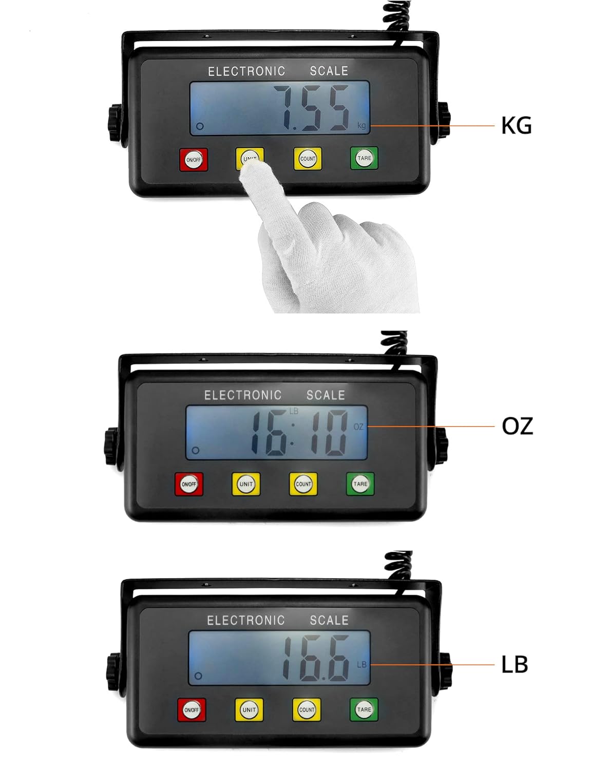 - Multifunction: Tare function, count function, Unit change. You can hang the display on the wall or put it on desktop.
