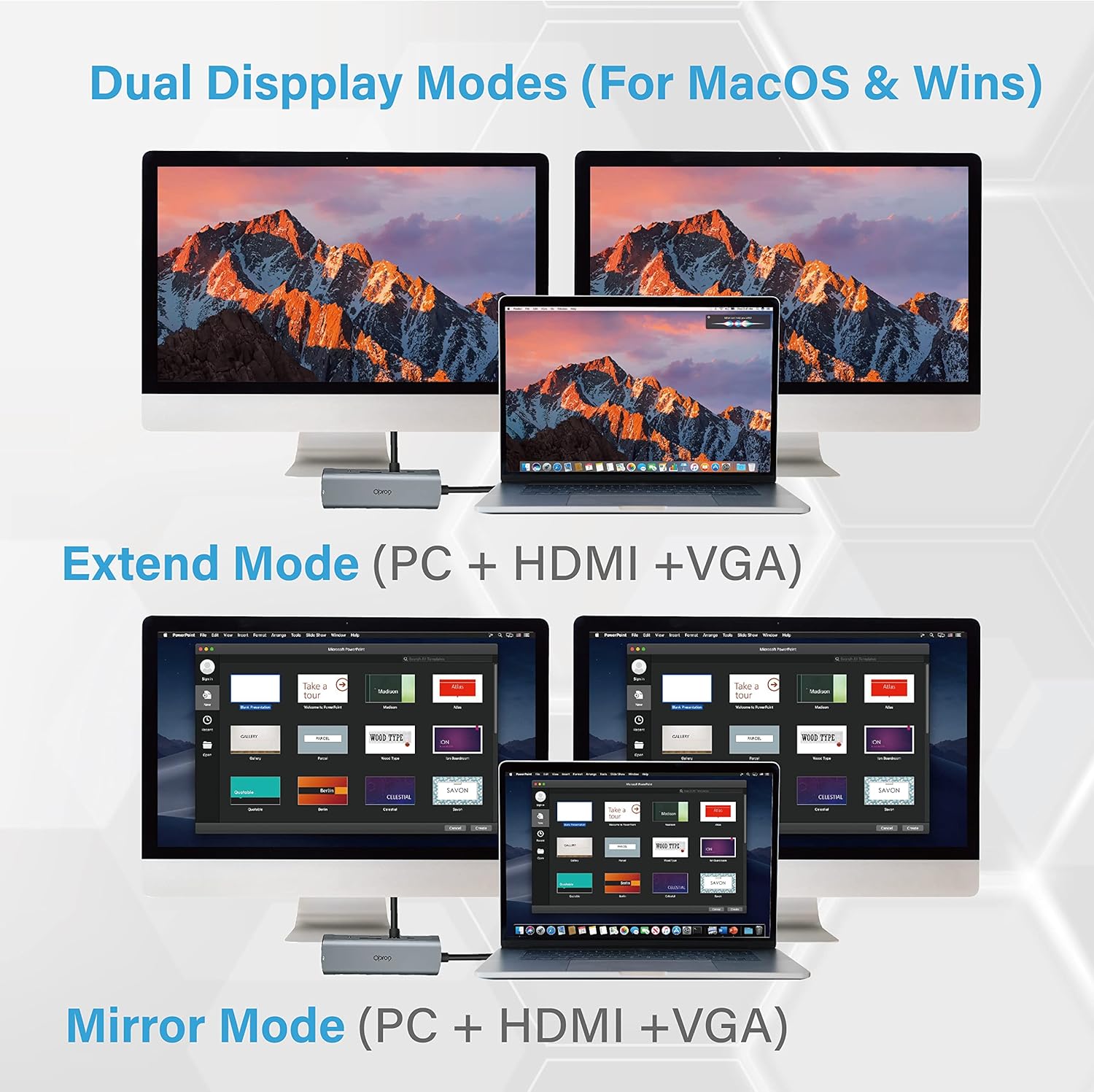 Opro9 10-in-1 USB C Hub Multiport Adapter, Laptop Docking Station Dual 4K HDMI / 1080P VGA, USB 3.0, PD 100W, Gigabit Ethernet, SD/TF Card Reader, 3.5mm Audio Jack, for Windows & MacBook PC, Laptops