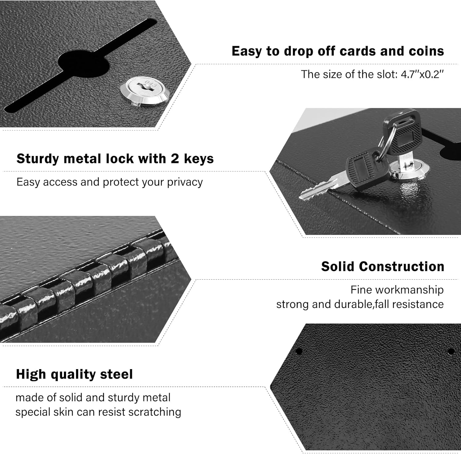 - 【DURABLE MATERIAL&CONSTRUCTION】 - xydled wall mounted ballot box is made of solid and sturdy metal,special skin can resist scratching,can be conveniently put on the desk and also installed in the wall of the room.