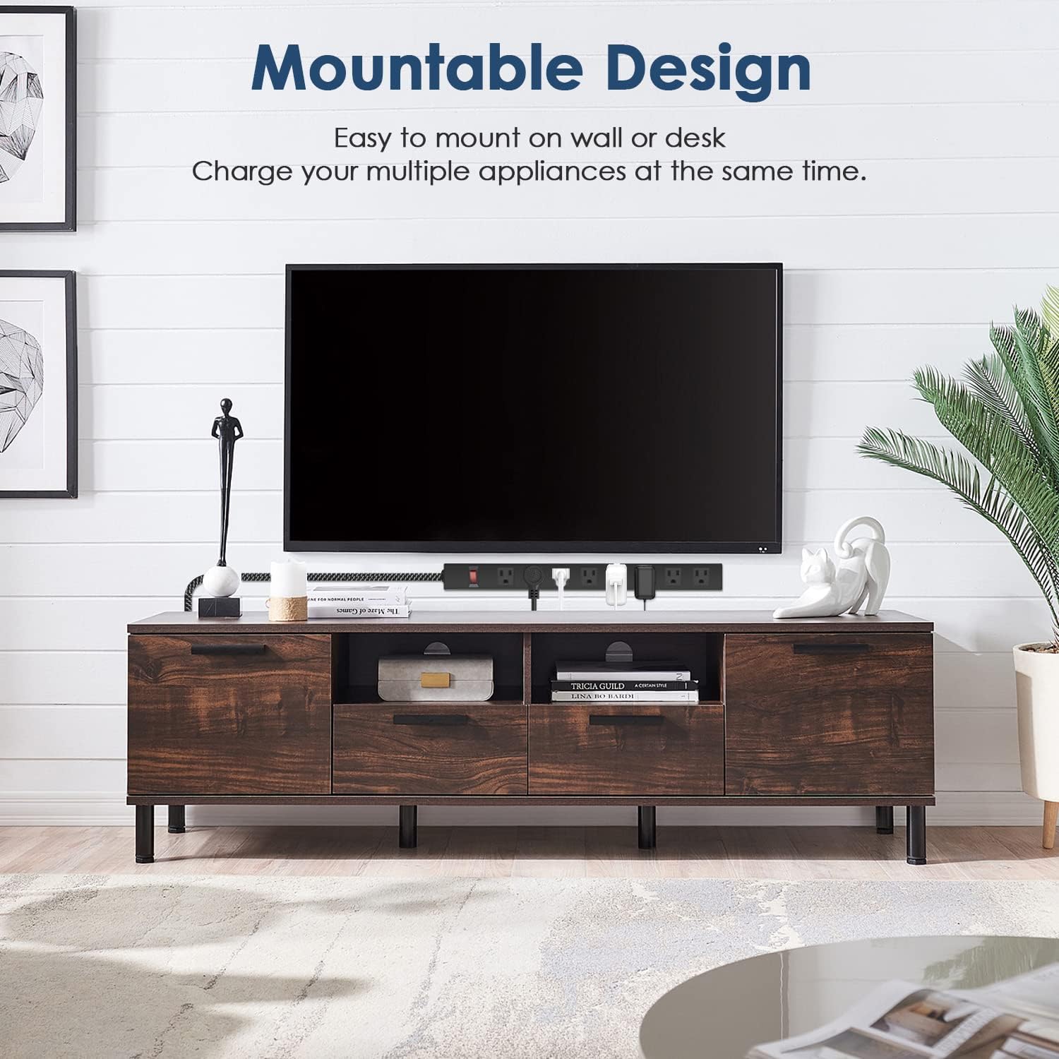- 【8 in 1 Power Strip】This mountable power strip features 8 outlets and 1 switch, providing you with multiple options to connect your devices. With a 3 feet 14AWG braided cord, it ensures durability and easy reach to power sources. Rated at 1200J, 1875W, 15A, 125V, 60Hz, and with SGS certification, it guarantees safe and reliable charging.
