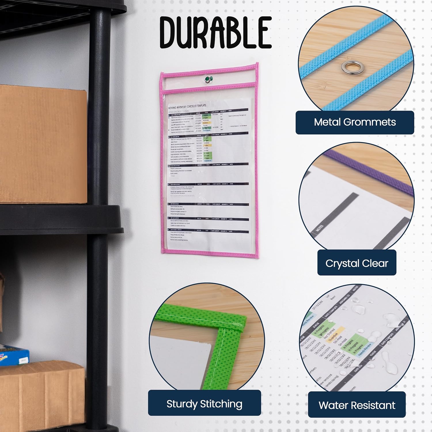 - Reusable - With their dry erase surface, the clear document sleeves are completely reusable. Simply insert the sheet and endlessly write on the front of the ticket holder and erase it when no longer needed.