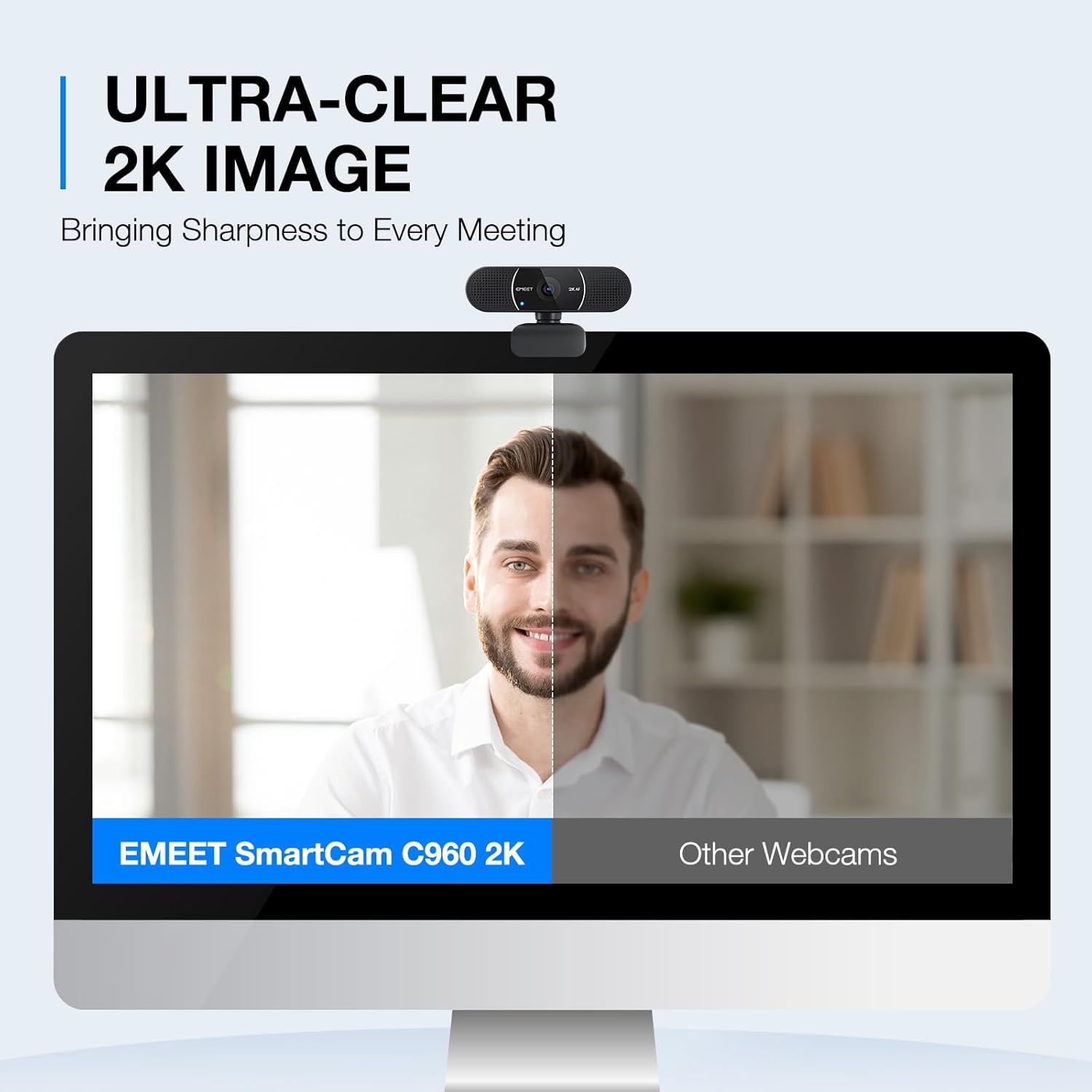 - [High Compatibility & Multi Application] C960 2K webcam for laptop is a high compatibility and multi-application device that is perfect for online studying/teaching, home office, conferences, meetings, or video calling. compatible with Windows 7/10/11, MacOS 10.10 and above, Linux, Android TV 7.0 and above. Plus, it's compatible with all major video conferencing software like Zoom, Facetime, Google Meet, Skype, GoToMeeting, and more.