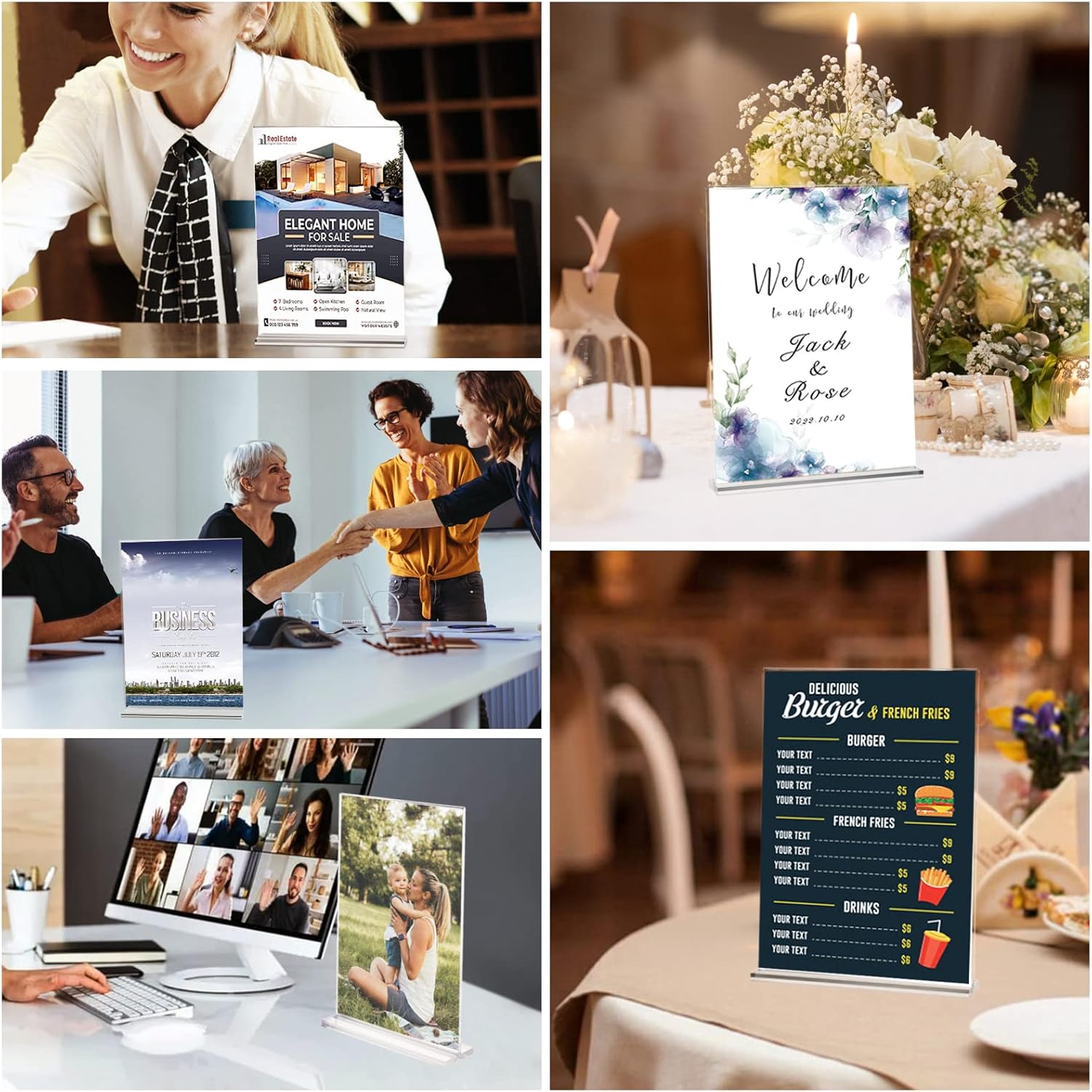 YULEER 8 Pack Acrylic Sign Holder 8.5x11, Clear Double-Sided Display Stand, Plastic Paper Frame for Menu, Flyer, Picture, Office Desk, Wedding Sign Holders