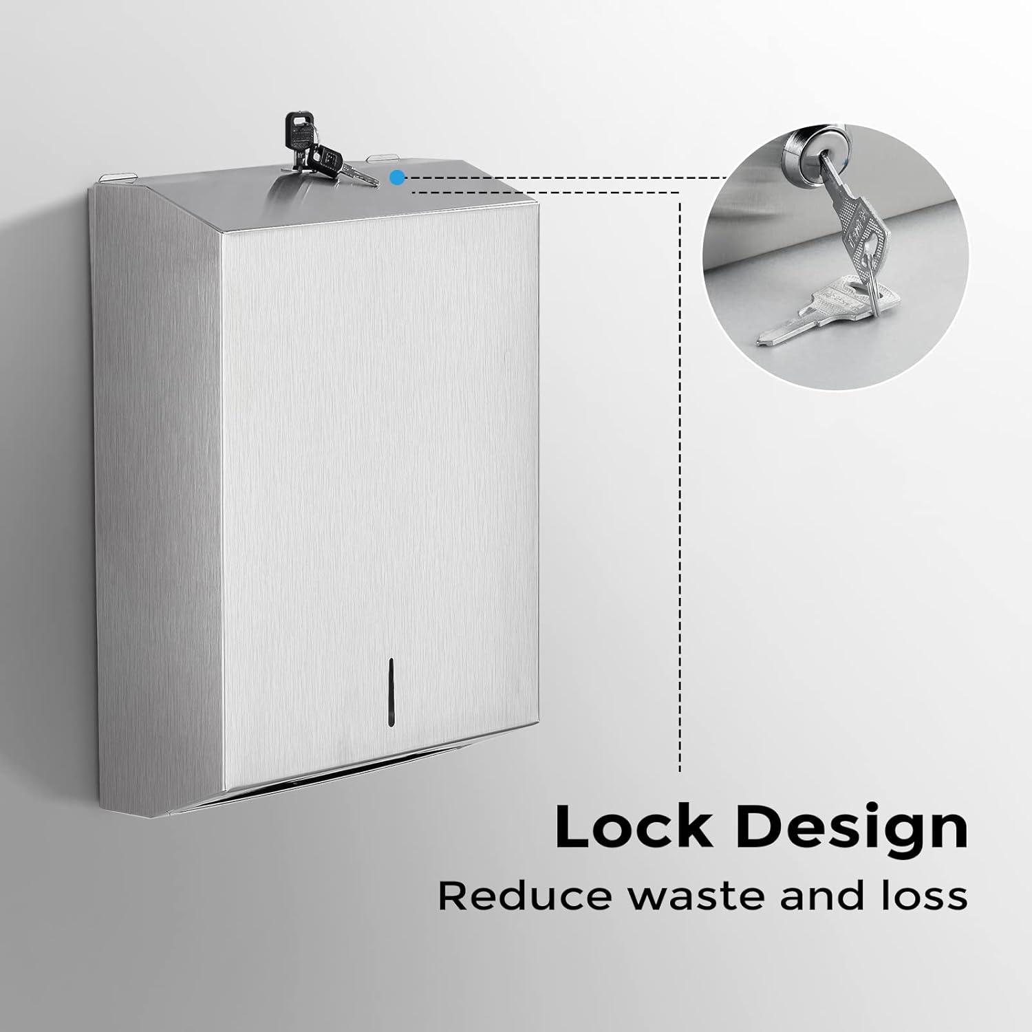 - π Easy-To-Use Design: A visible window on the front allows for timely refilling of paper towels. The locking design prevents damage as well as dust from getting inside the commercial paper towel dispenser. Smooth polished surface is easy to wipe;