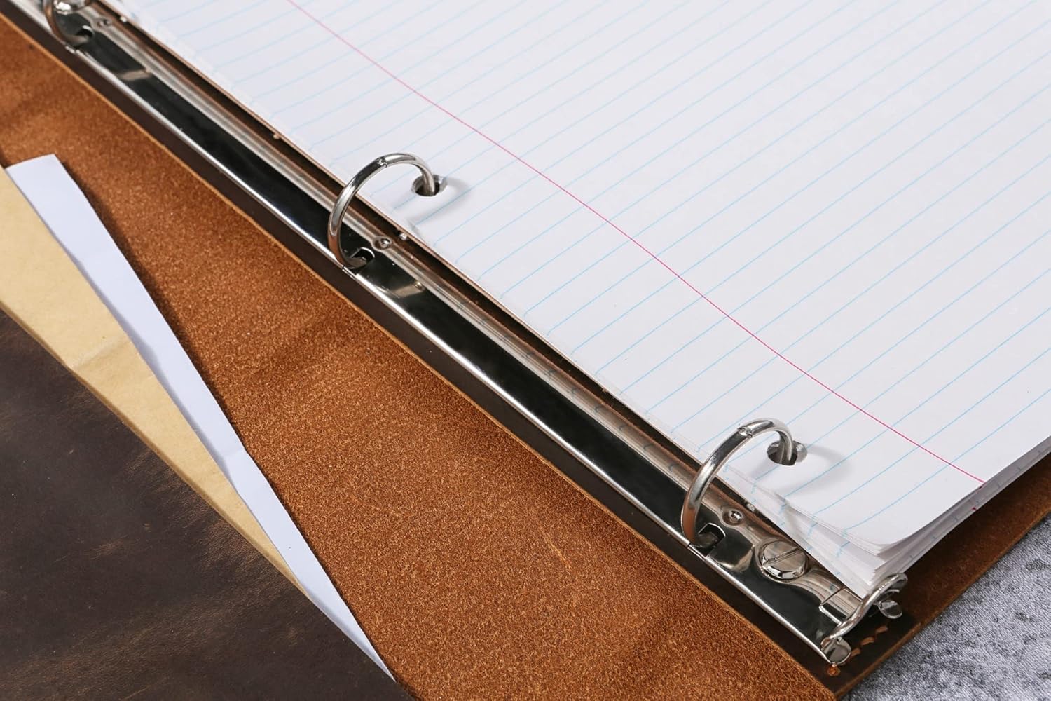 Leather business portfolio 3 ring binder for letter size 3 hole refill paper/leather organizer folder for 8.5 x 11 refillable paper