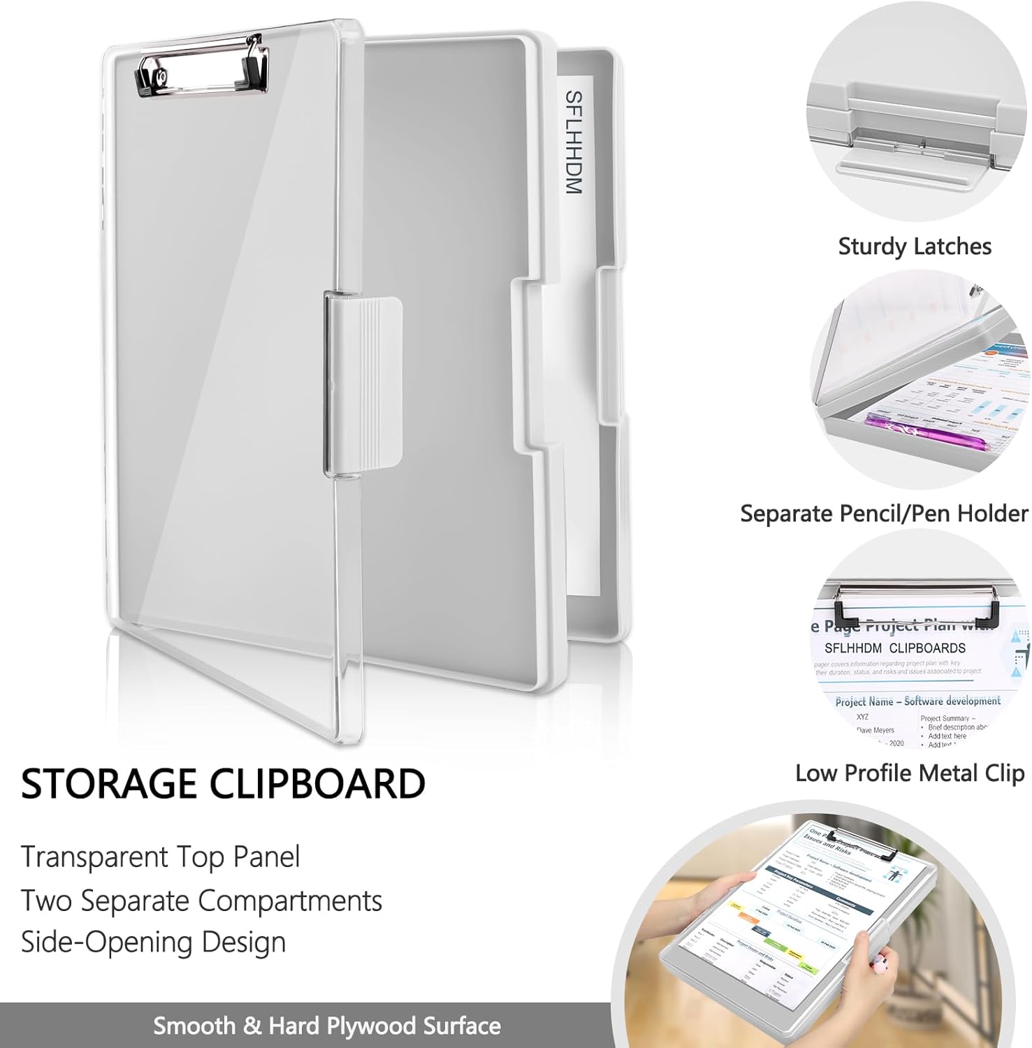- All-In-One Storage Clipboards: Dual-Layer design ensure roomy space for various needs of storage.You can keep frequently used documents on the top compartment. A second lower compartment is deep enough to store more than 300 sheets. Separate pen/pencil case for pens, markers, and other small items