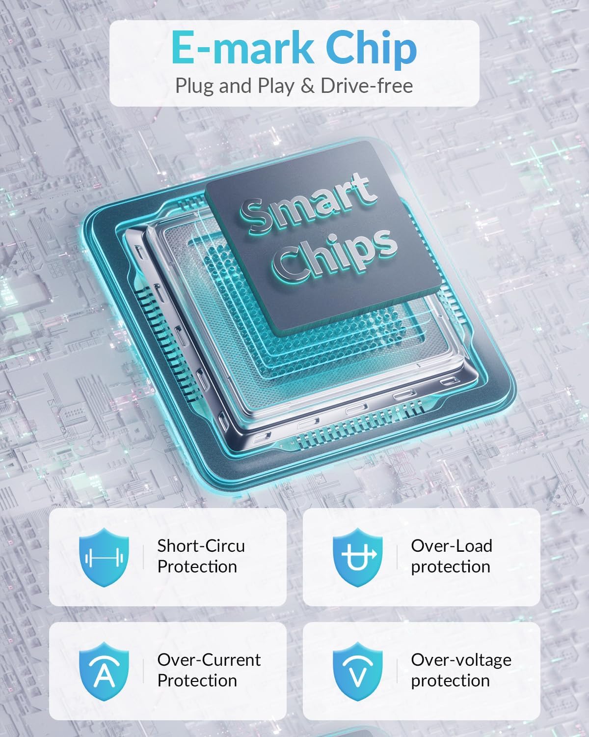 - ✔️【Support High Power Devices】The additionally designed USB C power port(5V/3A) ensure stable operation of high-power equipment. We recommend connecting to a backup power port when connecting SSDs exceeding 4TB. The power adapter is not included in the package.