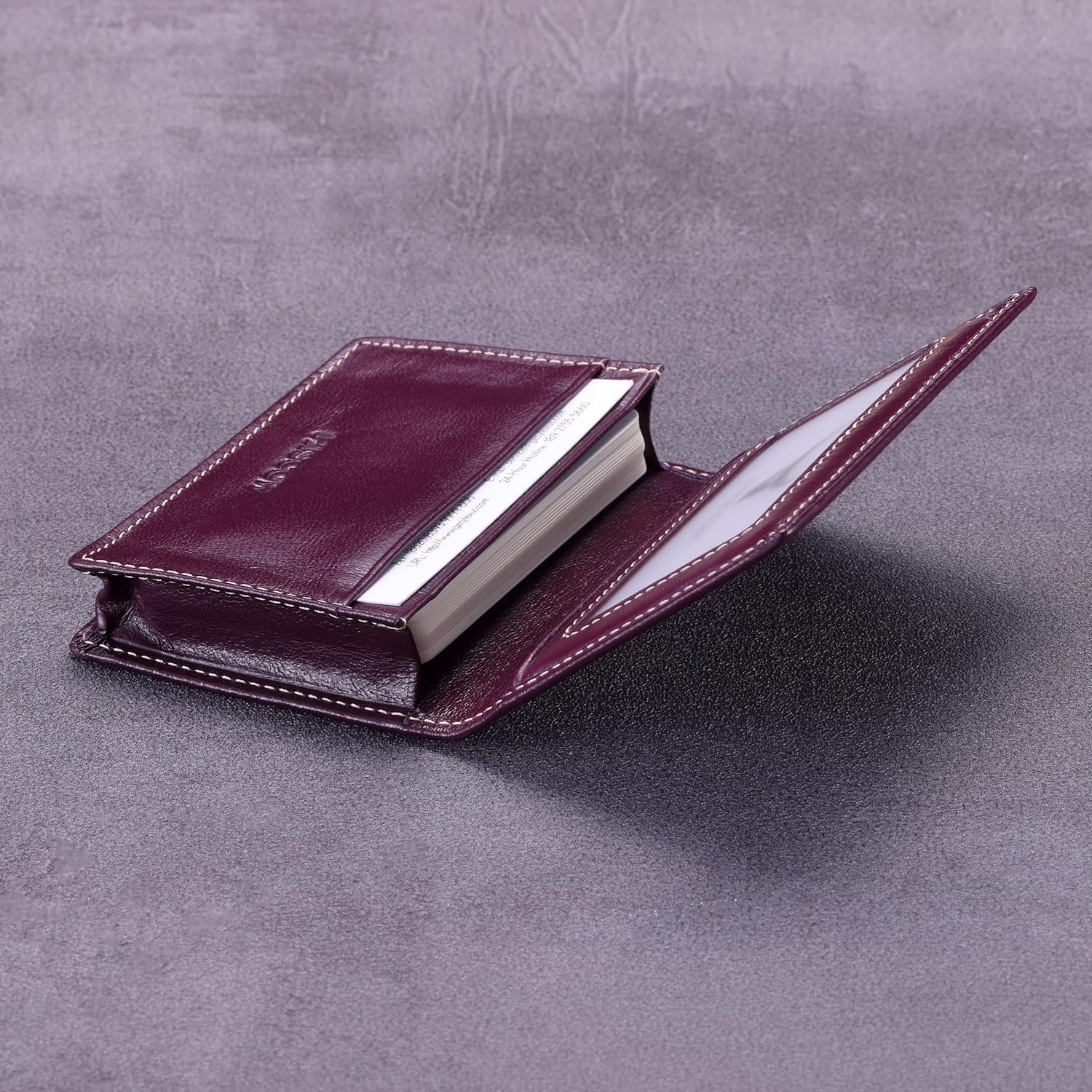 Leather Business Card Case Holder for Men & Women, Italian Calfskin