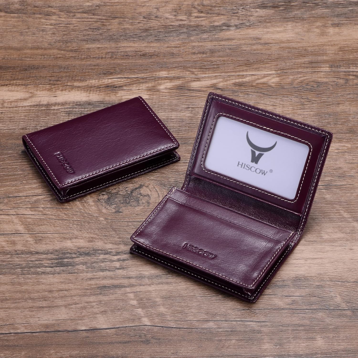 - What You Get: HISCOW Leather Business Card Holder, in an exact-fitting and classy matte-black box. Welcome guide, our worry-free 12-month warranty and friendly customer service