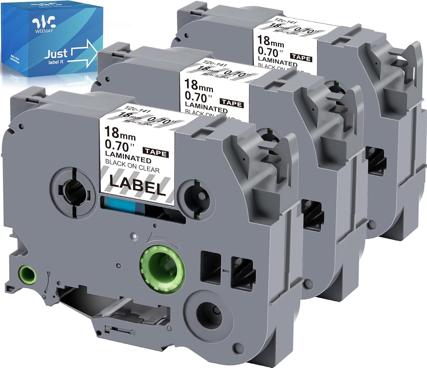 Weemay Compatible 3 Pack TZe-141 Replacement for Brother P-Touch Label Tape 18mm 0.7 Black on Clear 3/4 TZe TZ Tape TZ-141 TZ141 TZe141 for PT-D400AD PT-D610BT PT-D600 PT-D410 Printer, 0.7" x 26.2'