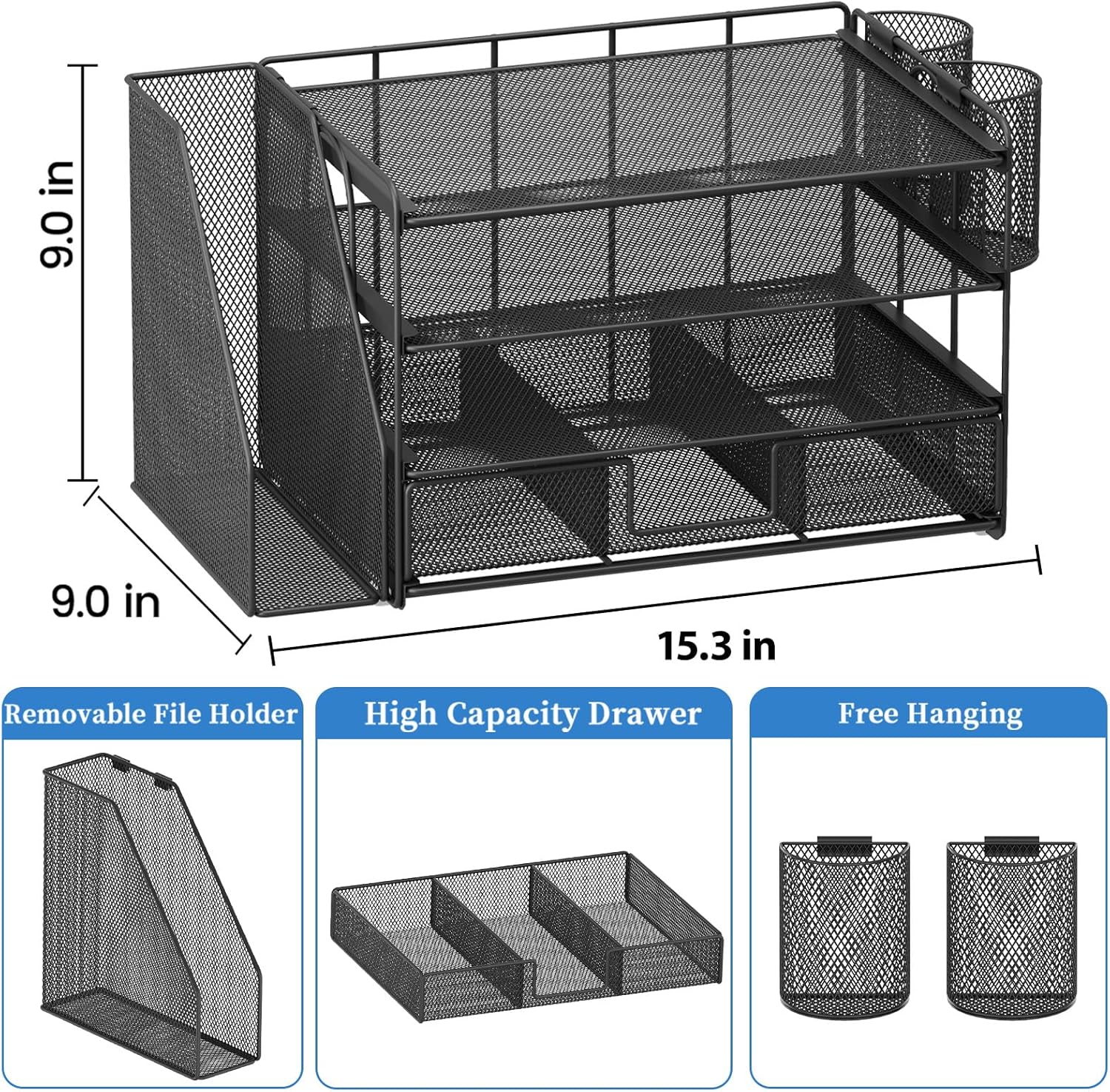 - 🎁【Premium Quality】Crafted from high-quality industrial-strength steel wire mesh and reinforced with a solid steel frame, our desk file organizer is built to last. You can trust that it will withstand the test of time and keep your workspace organized for years to come